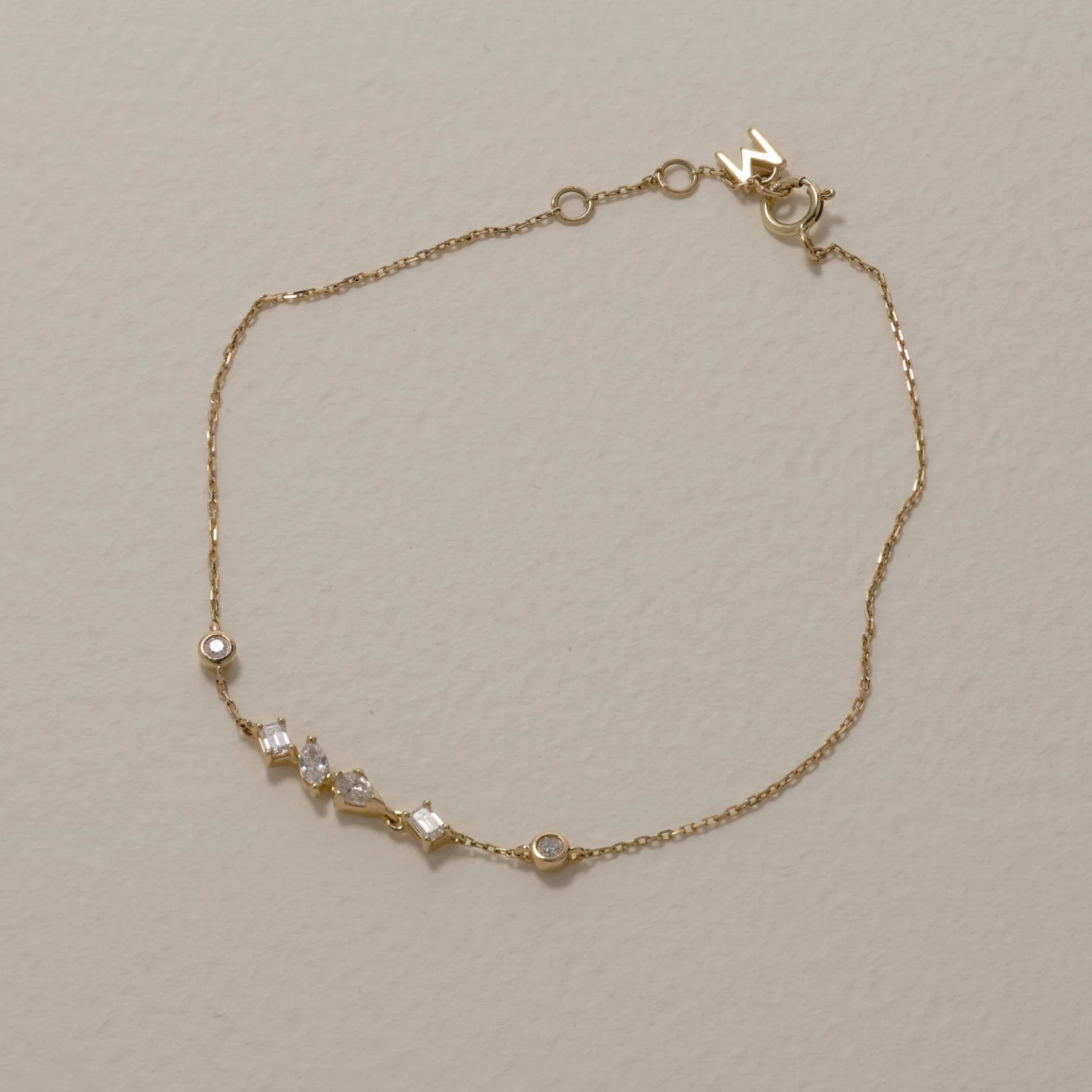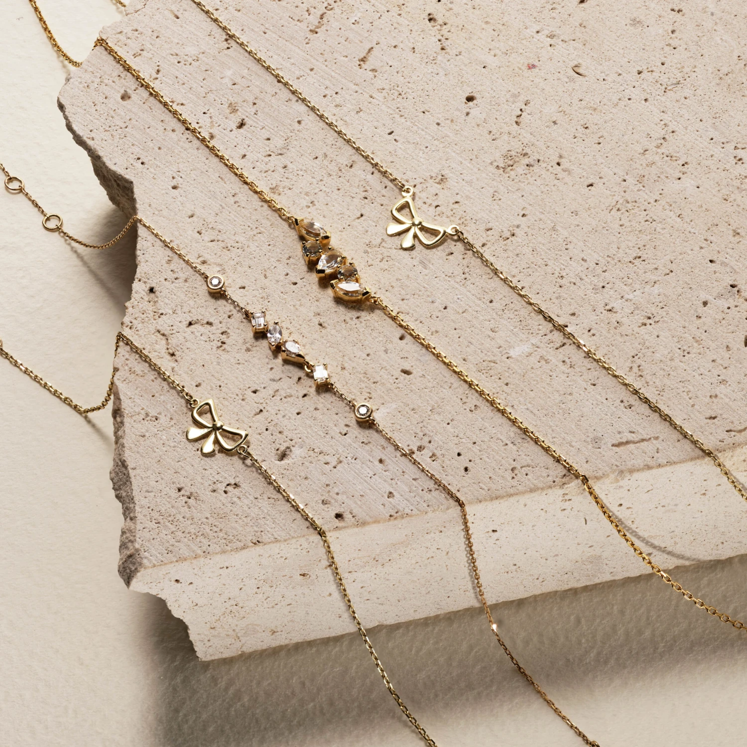 I love how the diamonds sit in this bracelet. They are different in shapes and the way the diamonds sparkle in the gold setting is just so special. I will wear it on its own or pair it with the bow bracelet from the collection – Dinnara x