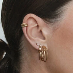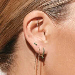 White Sapphire Triple Marquise Helix Single Stud Earring In 10k Gold