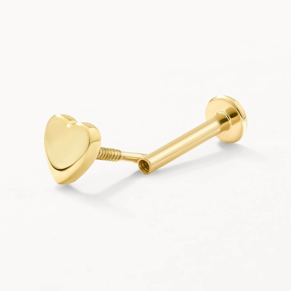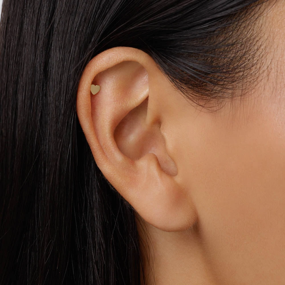 Wear your heart on your helix with this adorable and timeless single stud earring. Crafted in precious 10k gold and featuring a mini heart motif, this flat back stud is specially designed as helix jewellery. Choose from a 6.5mm or 8mm post length for your most comfortable fit.
