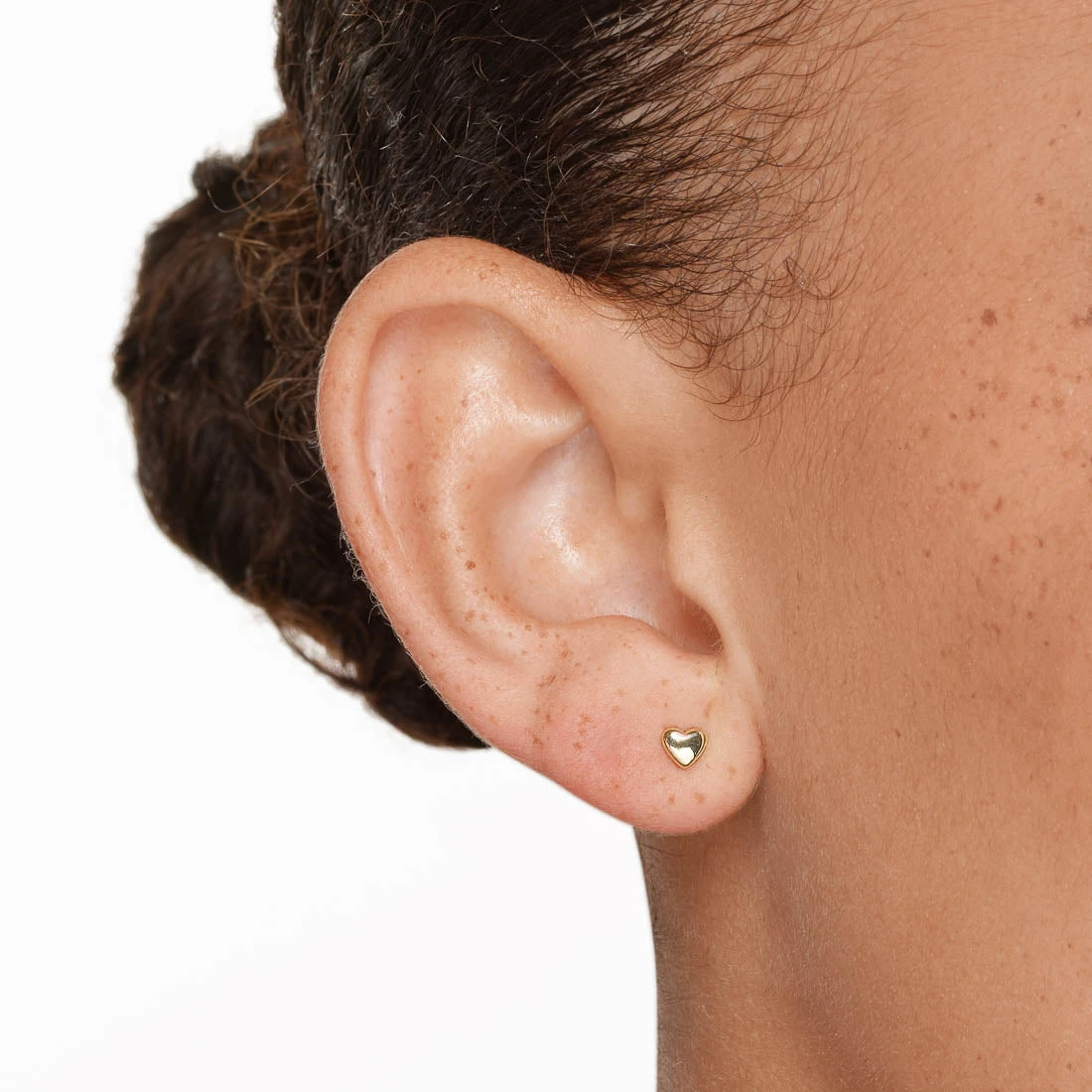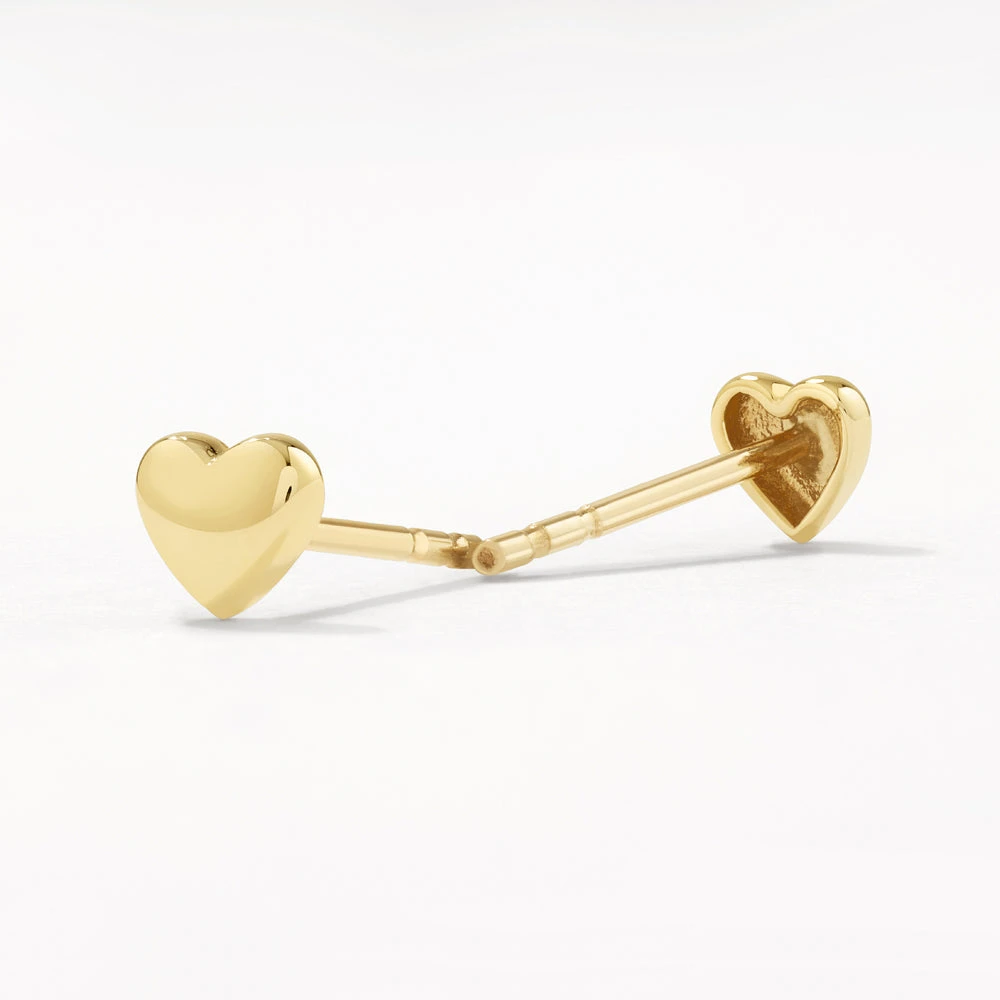 The sweetest little addition to your earring wardrobe. These classic solid gold studs feature a cute heart motif for added symbolism. Their mini stud size is perfect for your seconds or for everyday minimalism. Stack these heart earrings with other motif styles to build a personalised look.