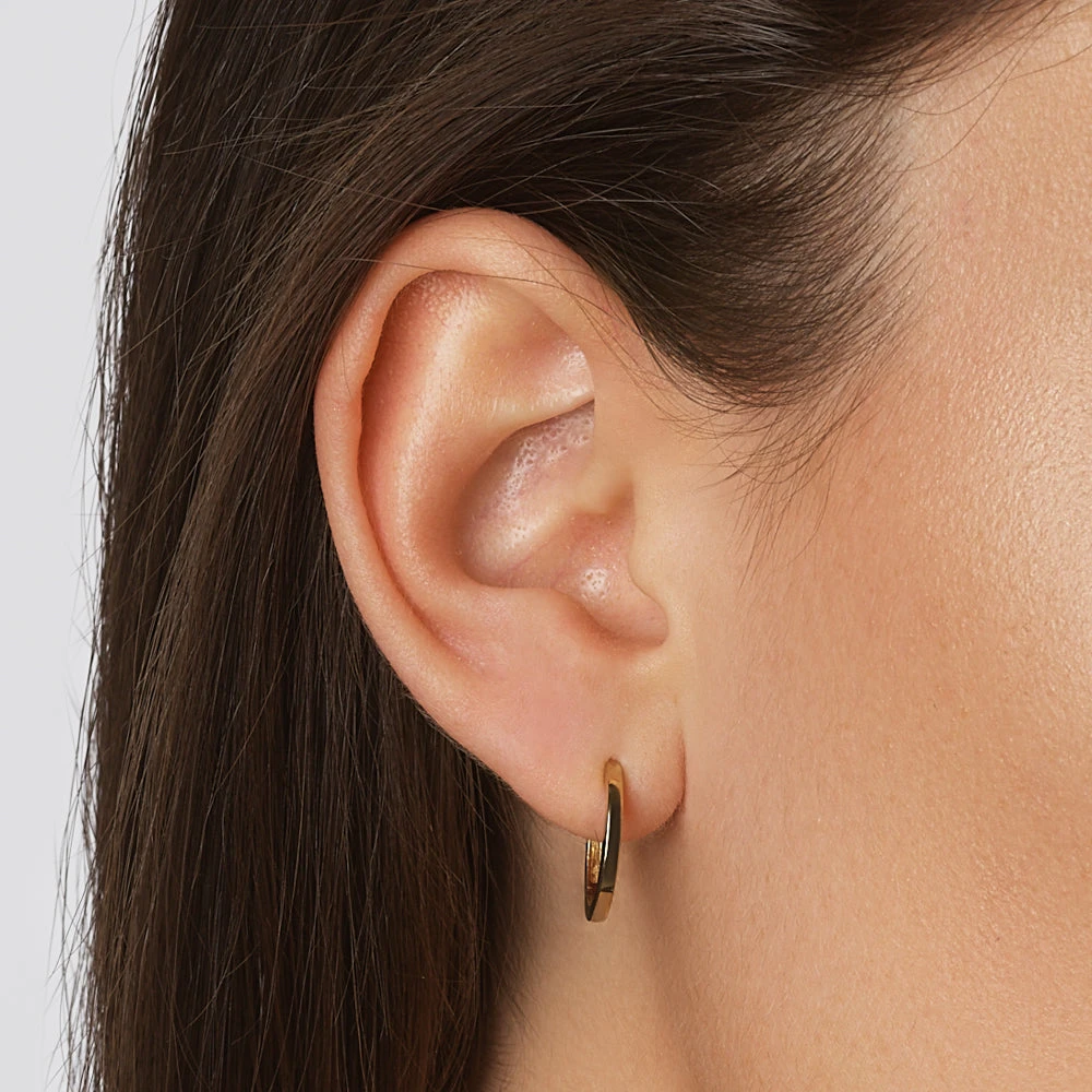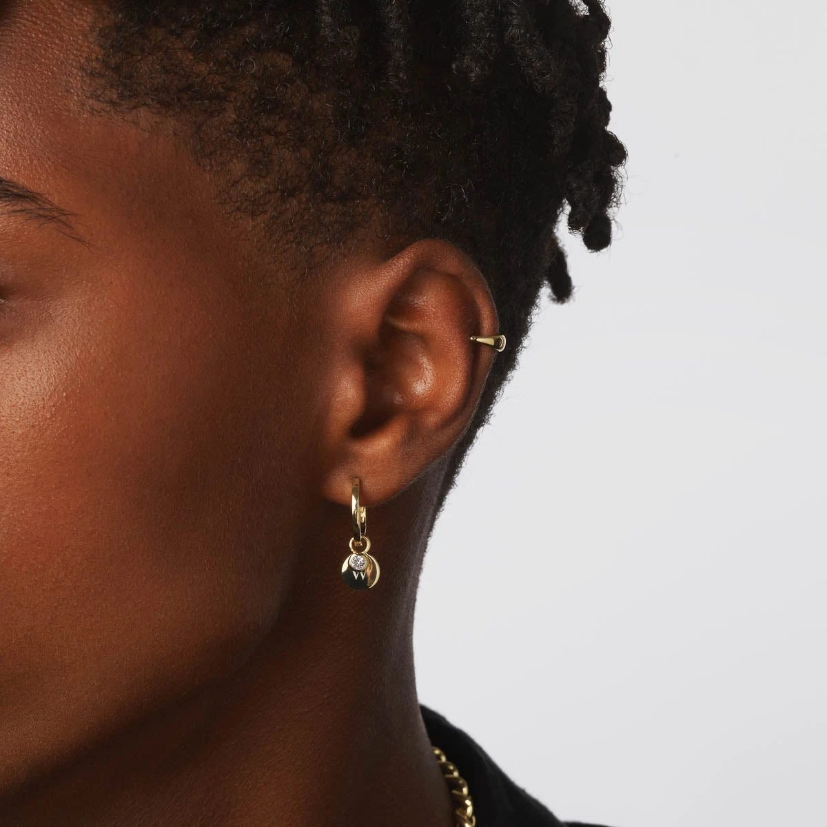 A must-have core style for your curated ear collection. These gold huggie earrings are specially designed to pair with our range of earring charms. Crafted in 10k yellow gold with a midi 12mm size, they’re the perfect everyday piece. Swap out your earring charms and stack with additional earrings to style your bespoke look each day.