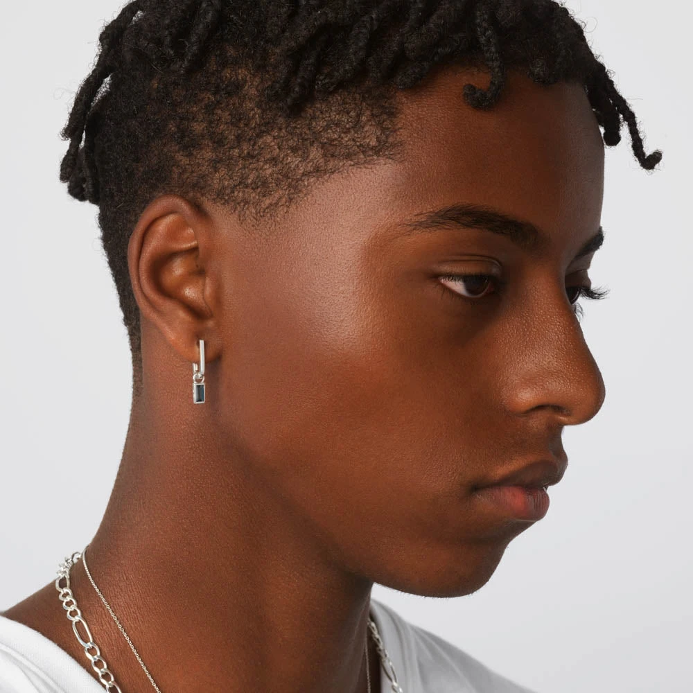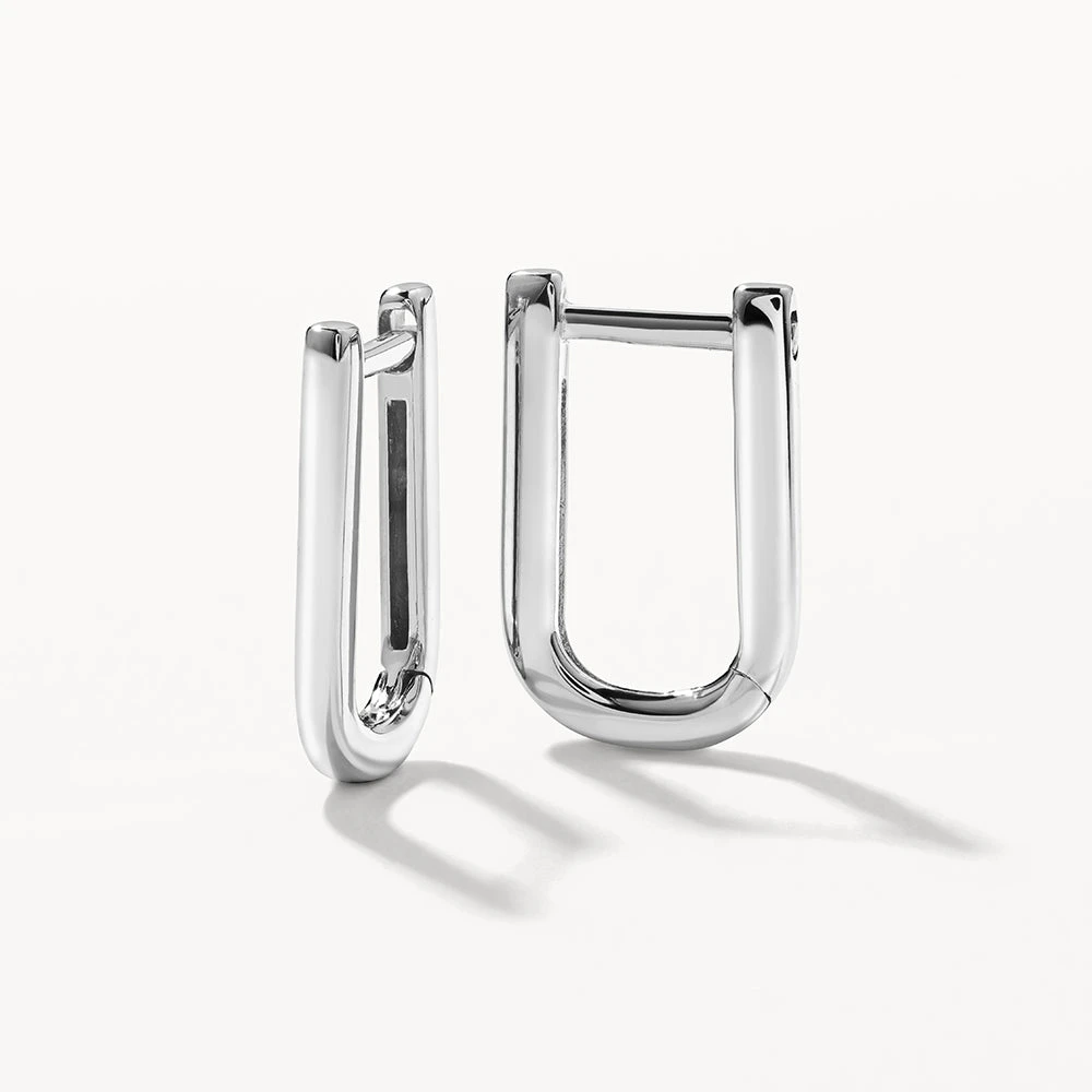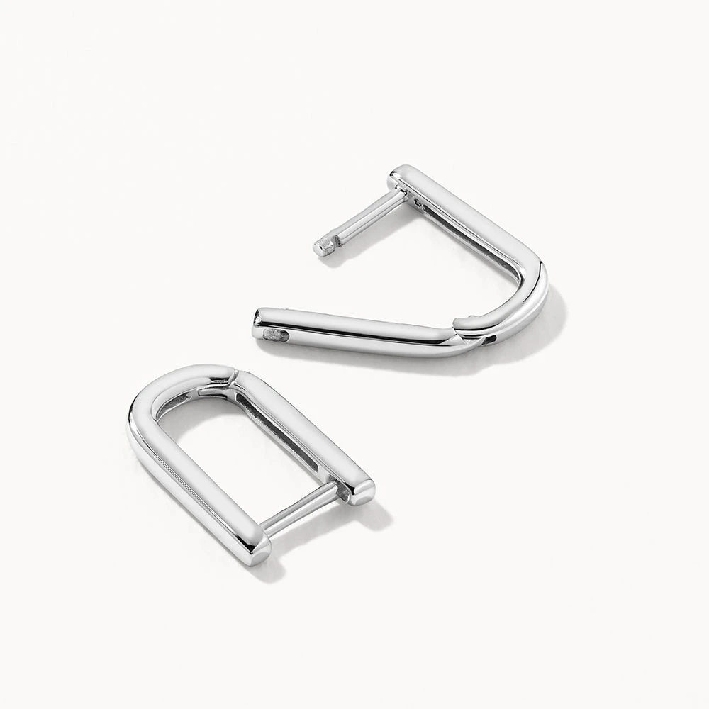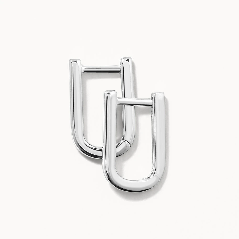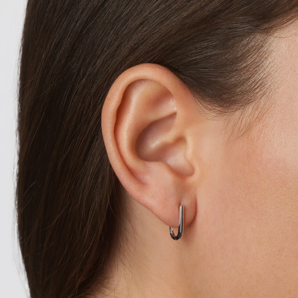 A must-have core style for your curated ear collection. These silver huggie earrings are specially designed to pair with our range of earring charms. Crafted in 925 sterling silver with a midi 12mm size, they feature a unique yet timeless paperclip shape. Swap out your earring charms and stack with additional earrings to style your bespoke look each day.