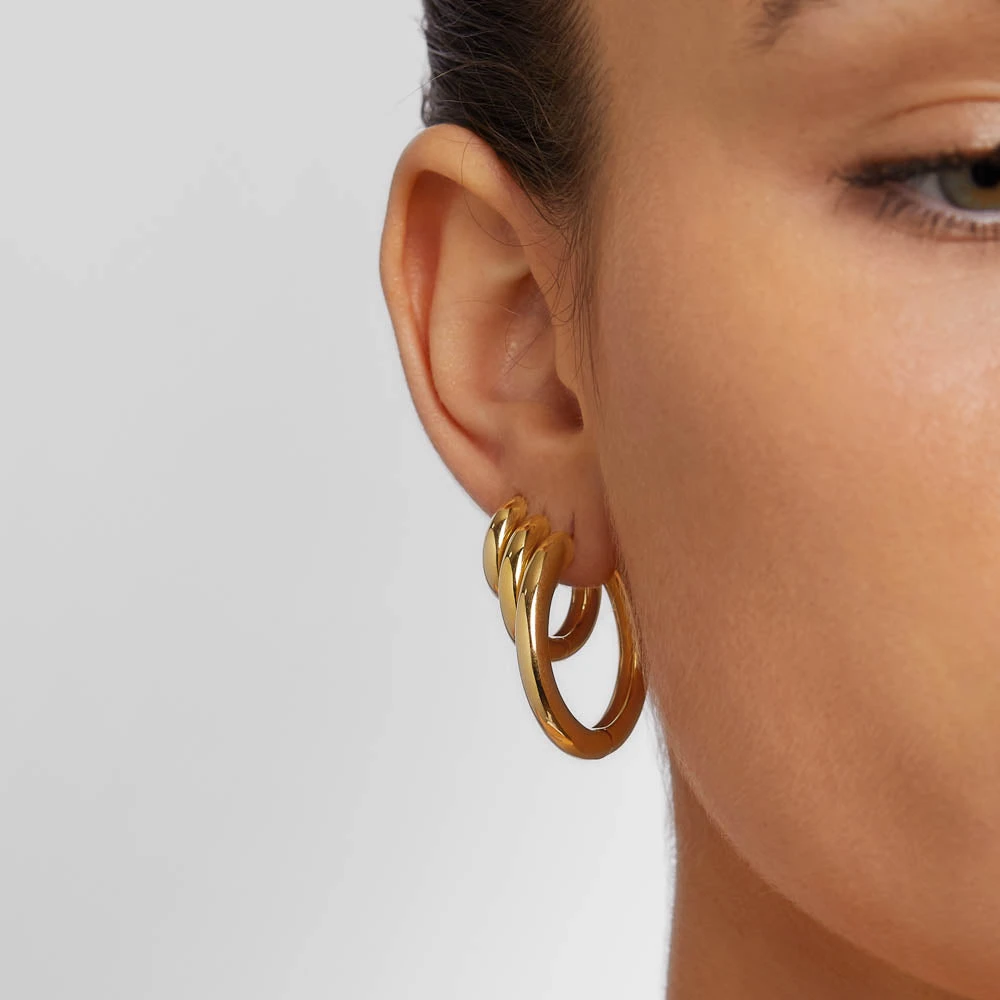 Everyday earrings. Simple as that. These timeless 20mm curve hoops in a perfect midi size are the ultimate pair to pop on anytime and every time. Crafted in rich 18ct fine gold plating, work them into a polished ear stack with our mini and maxi curve hoops, or mix up an eclectic look alongside stud earrings and diamonds.