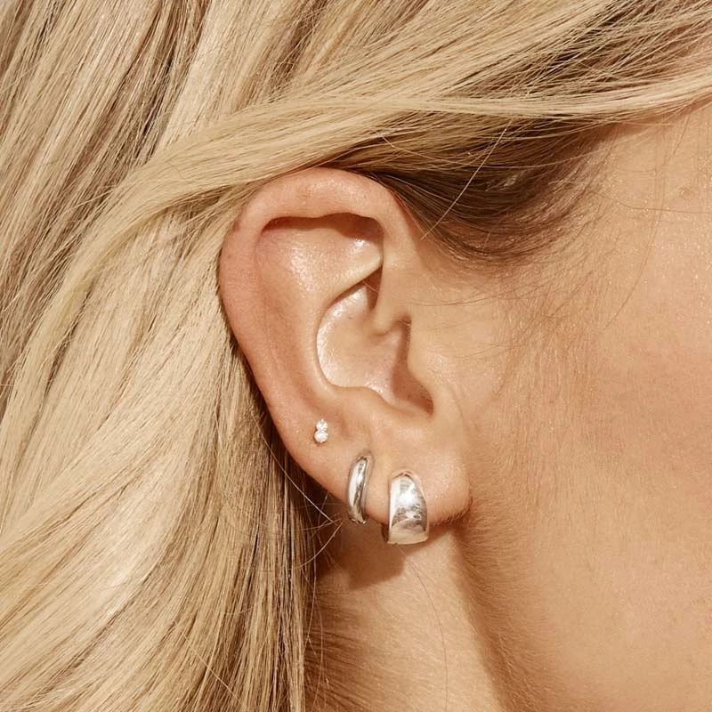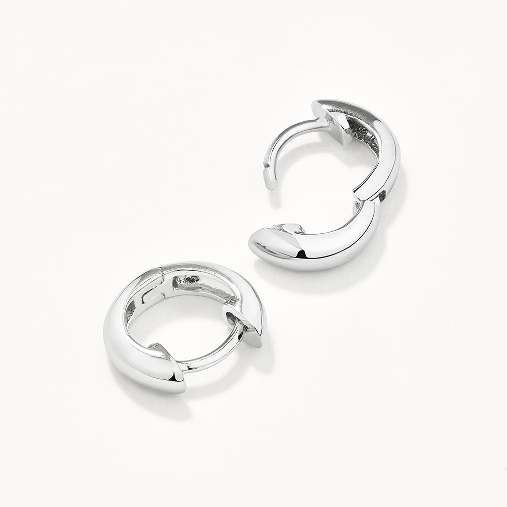 The midi huggie earrings in silver will take you from day to night, whether you are in the office or out for cocktails. Crafted in 925 sterling silver, these silver huggie earrings are the perfect everyday small huggie hoop to finish your look. Pair these silver huggies with a pair of silver hoops.