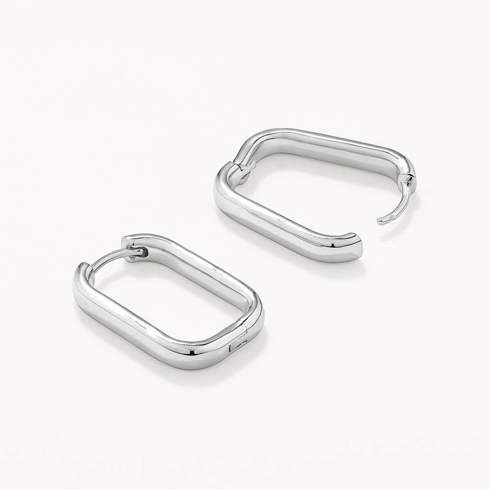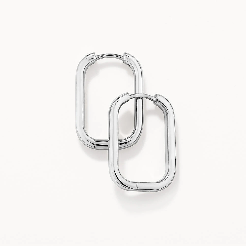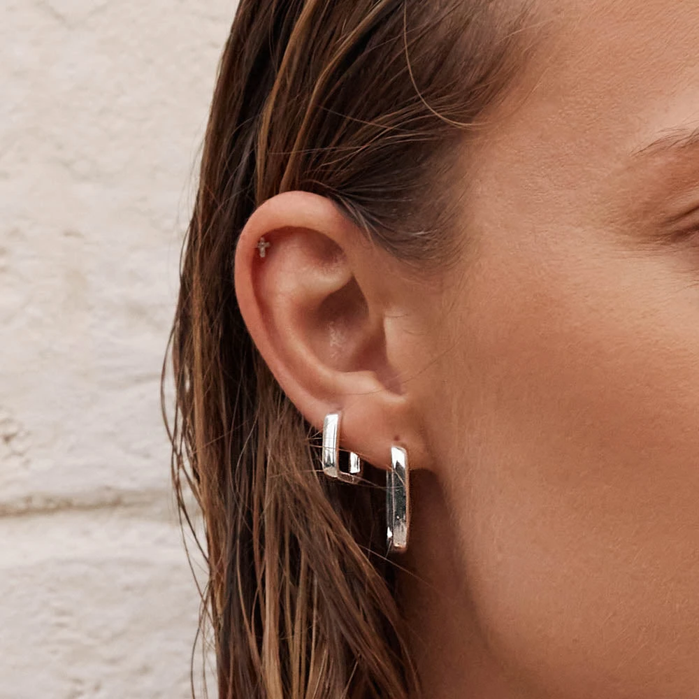 The paperclip design reigns in jewellery, and you can add it to your chic ear stack with our midi paperclip earrings. Crafted in 925 sterling silver with a medium 22mm diameter, these statement silver paperclip hoops are the perfect everyday piece with a unique edge. Stack them with round hoops for a mixed-texture stack. Also available in gold.
