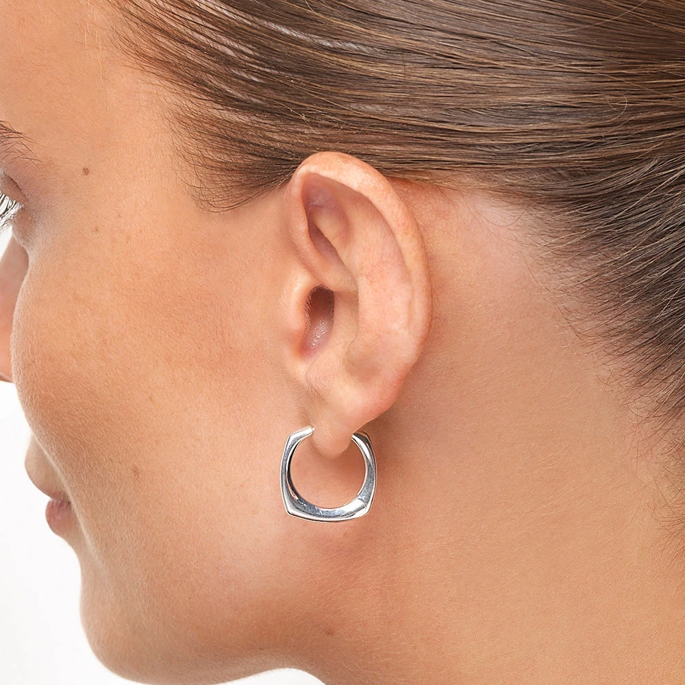 Your staple silver hoop earrings are updated with a contemporary square edge in these must-have earrings. Crafted in 925 sterling silver, these square hoop earrings have a 15mm diameter, perfect for everyday wear with a subtle unexpected edge. Add these small hoop earrings to your daily rotation, worn alone or stacked with classic hoops for contrast.