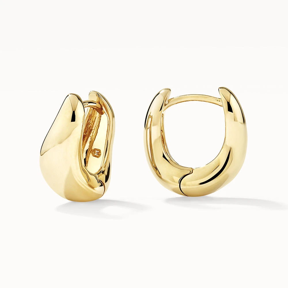 The perfect everyday gold hoop earrings, with a touch of the unique. These midi hoops crafted in 18k gold plated sterling silver feature a dimensional dome earring silhouette and a curvy wave design. These wave earrings are a great way to embrace the bold gold earring trend of the season, and an elevated break from your usual gold hoops.