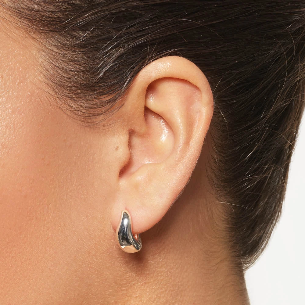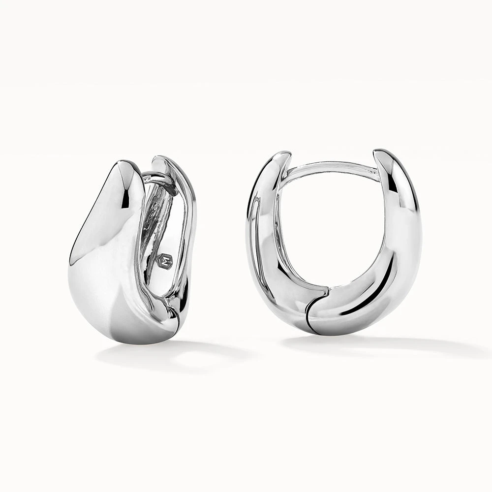 The perfect everyday silver hoop earrings, with a touch of the unique. These midi hoops crafted in 925 sterling silver feature a dimensional dome earring silhouette, and a curvy wave design. These wave earrings are a great way to embrace the bold earring trend, and an elevated break from your usual silver hoops.