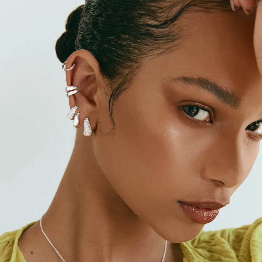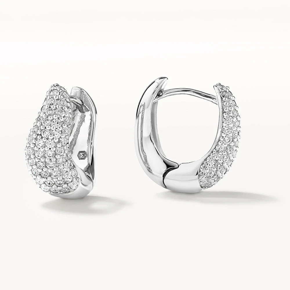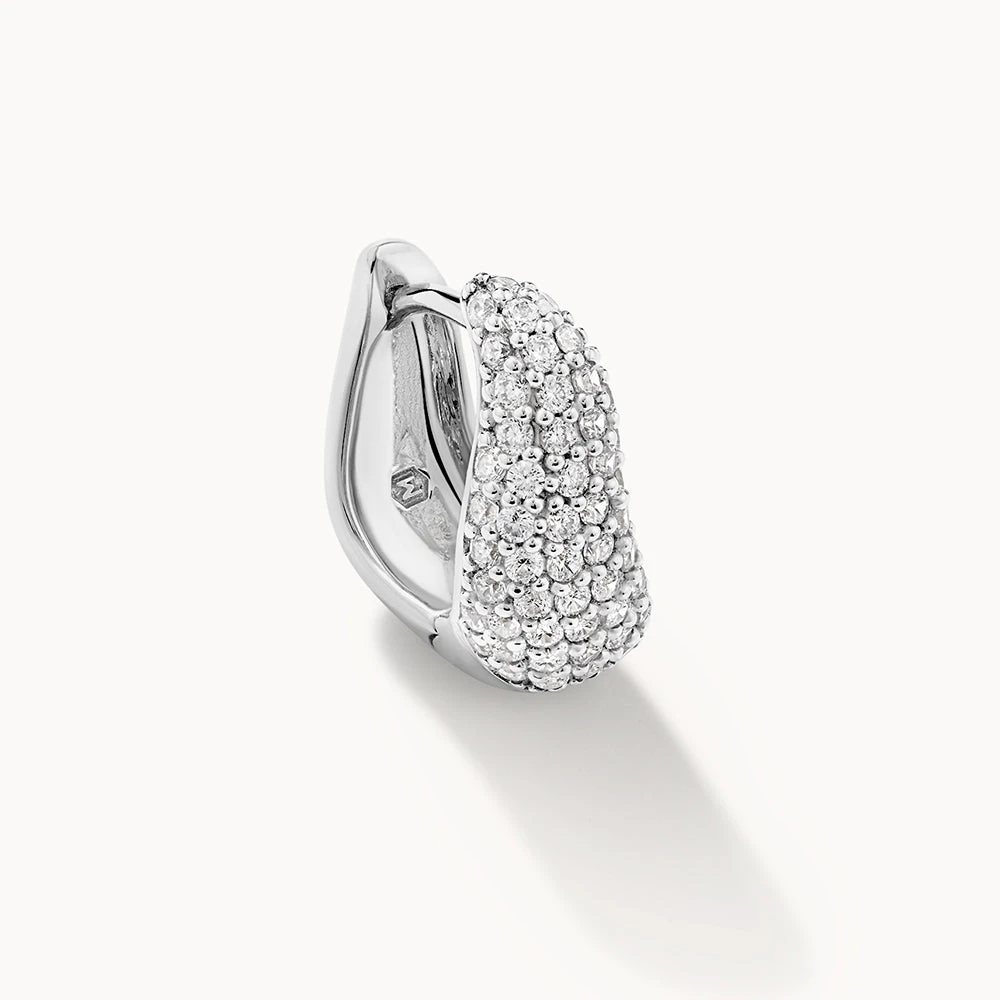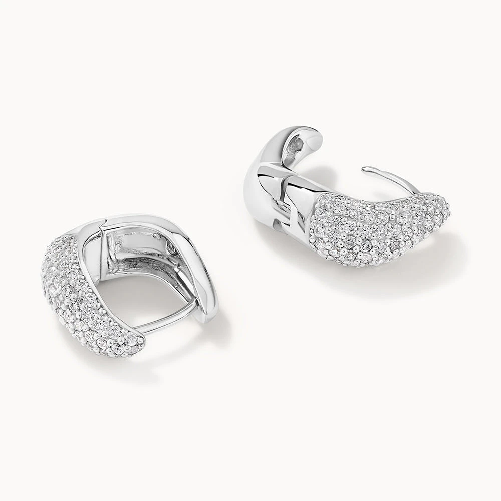 Sparkle and statement, these curvy silver hoop earrings are here to elevate every outfit and occasion. Amplified with a unique wave design, bold dome silhouette, and pave white topaz, these wave earrings are the eye-catching style of the season. Crafted in 925 sterling silver and natural white topaz, you can let them shine alone or stack up an unmissable ear stack alongside silver and gemstone earrings.