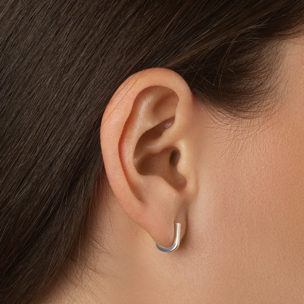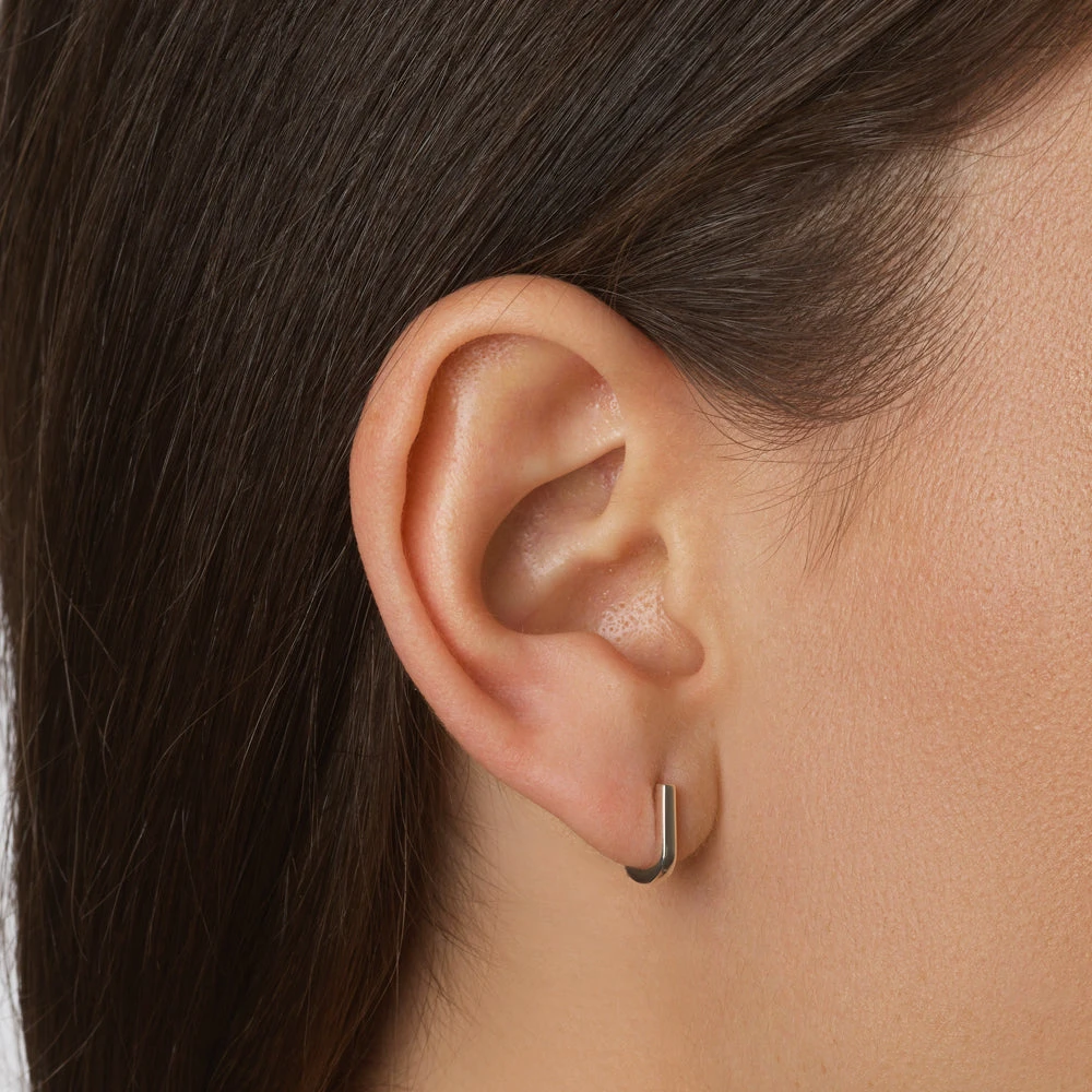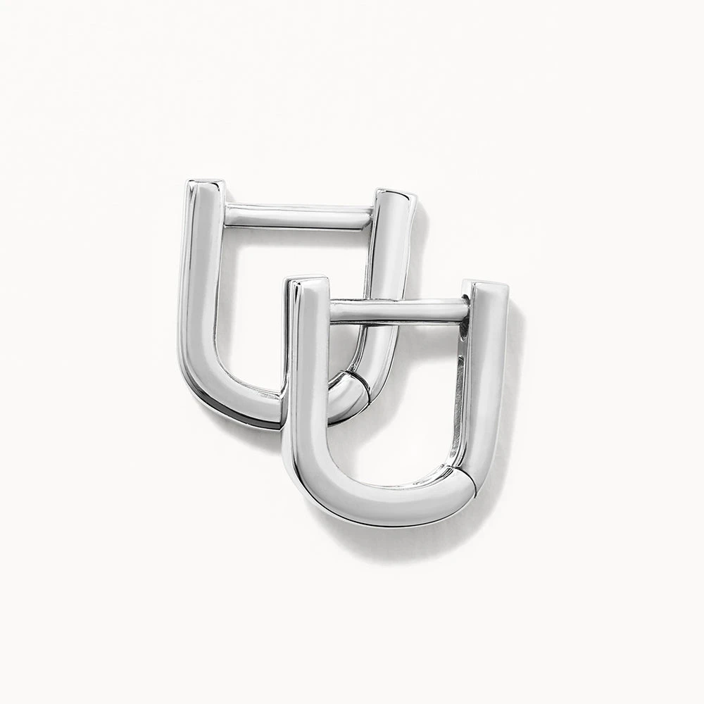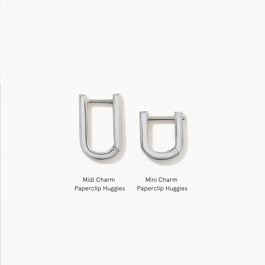 A must-have core style for your curated ear collection. These silver huggie earrings are specially designed to pair with our range of earring charms. Crafted in 925 sterling silver with a snug 7mm size, they feature a unique yet timeless paperclip shape. Swap out your earring charms and stack with additional earrings to style your bespoke look each day.