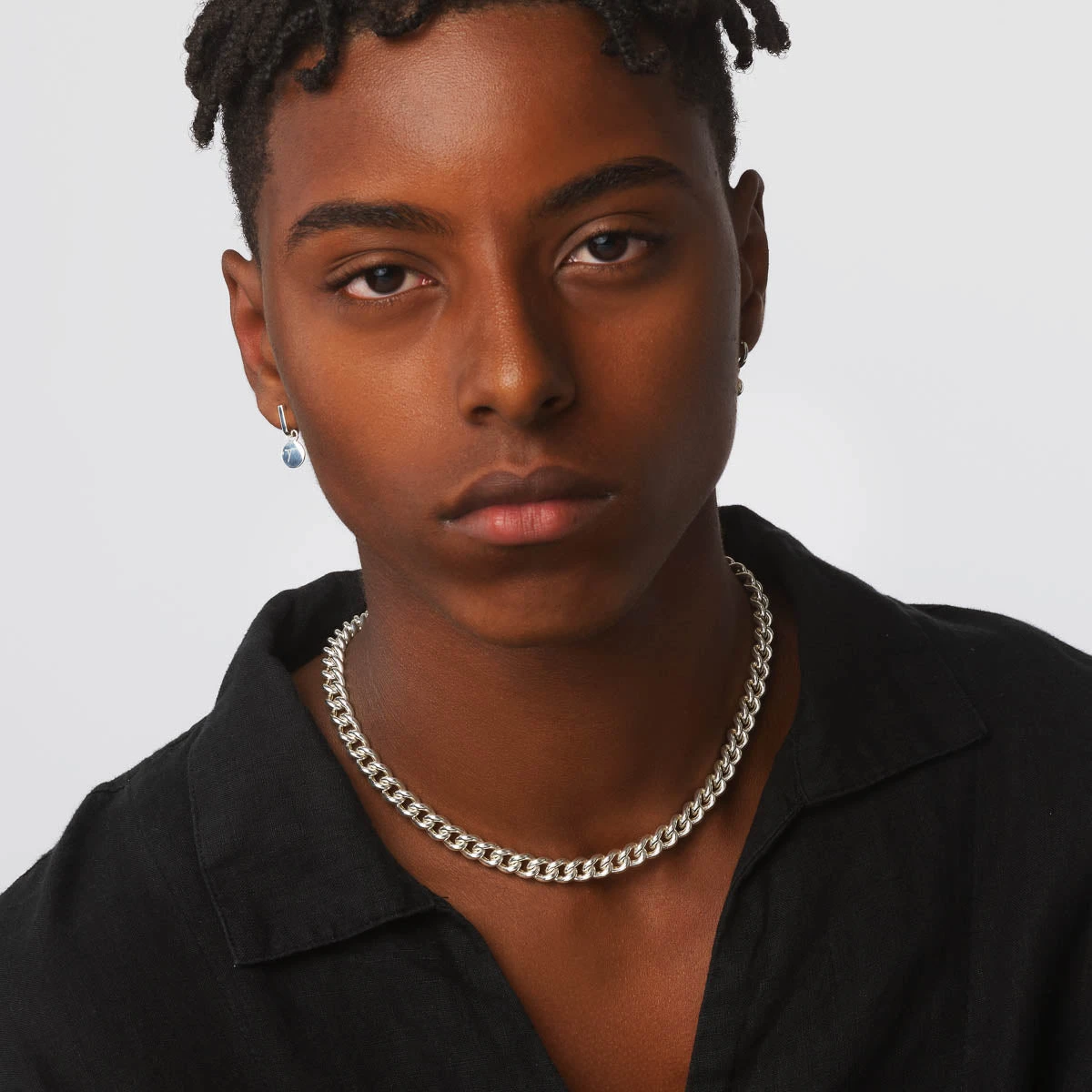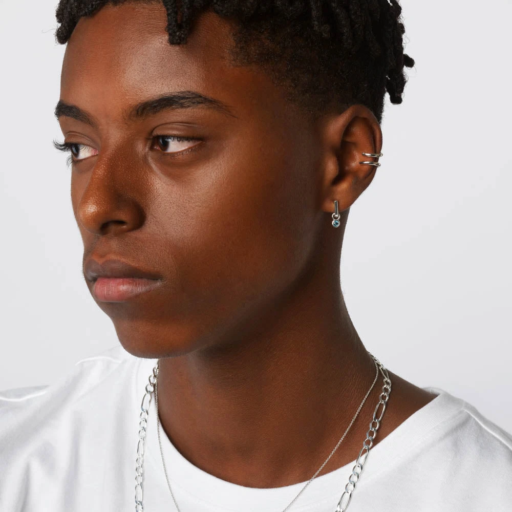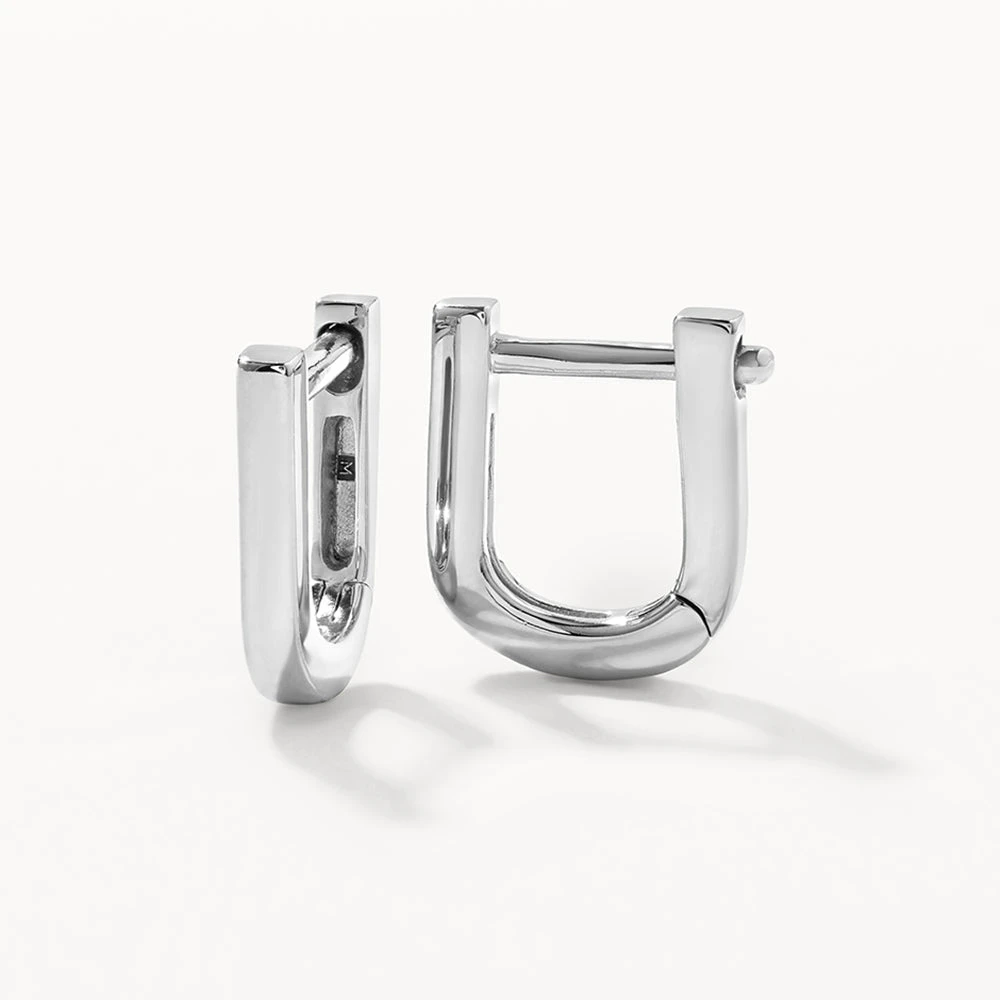 A must-have core style for your curated ear collection. These silver huggie earrings are specially designed to pair with our range of earring charms. Crafted in 925 sterling silver with a snug 7mm size, they feature a unique yet timeless paperclip shape. Swap out your earring charms and stack with additional earrings to style your bespoke look each day.