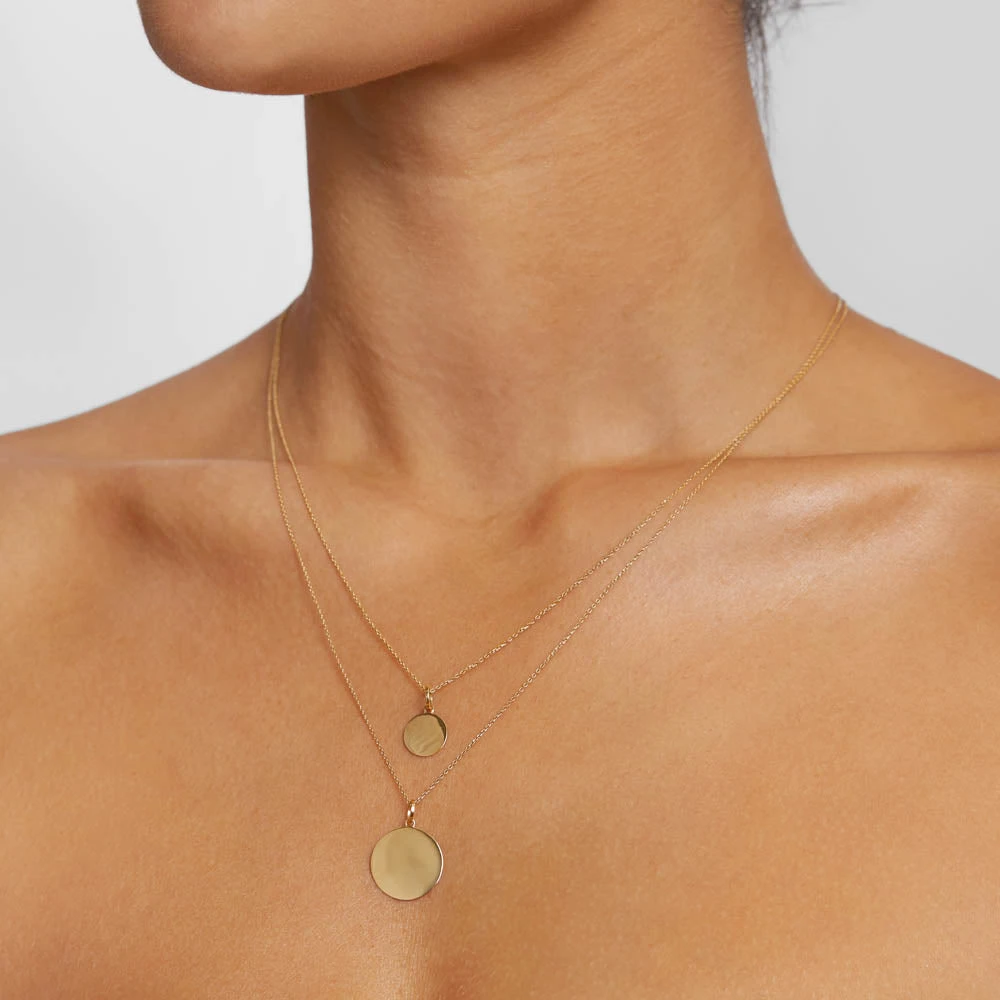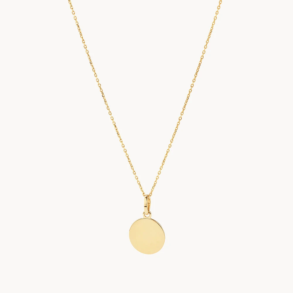 A tiny treasure to slip onto your favourite delicate chain. Our mini engravable fine disc necklace in 10k gold is a precious way to embrace the personalisation trend. Wear alone for minimalist vibes, or stack it with additional engravable pendants and our diamond letters to curate your story. Also available as a single pendant.