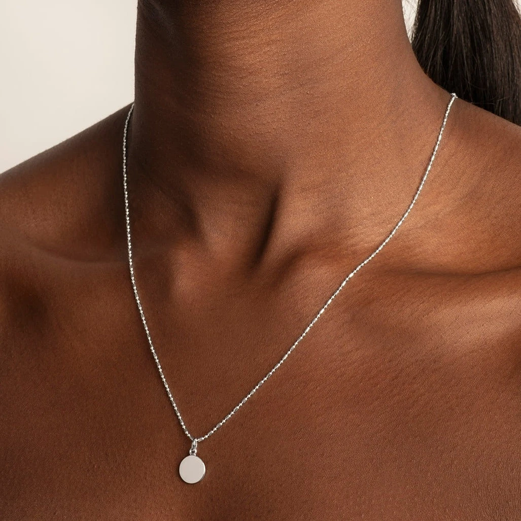 Whether you are looking for a sterling silver pendant to add to your favourite chain, or to gift a personalised jewellery gift. There’s something classic about a simple circle pendant. Create a timeless look with the engravable mini full moon pendant in 925 sterling silver. This complimentary engraved circle pendant is a timeless jewellery staple for every occasion. Pair this pendant with the cable knit chain, bauble chain, twizzle chain or the fine figaro chain. Also available in rose gold and gold.