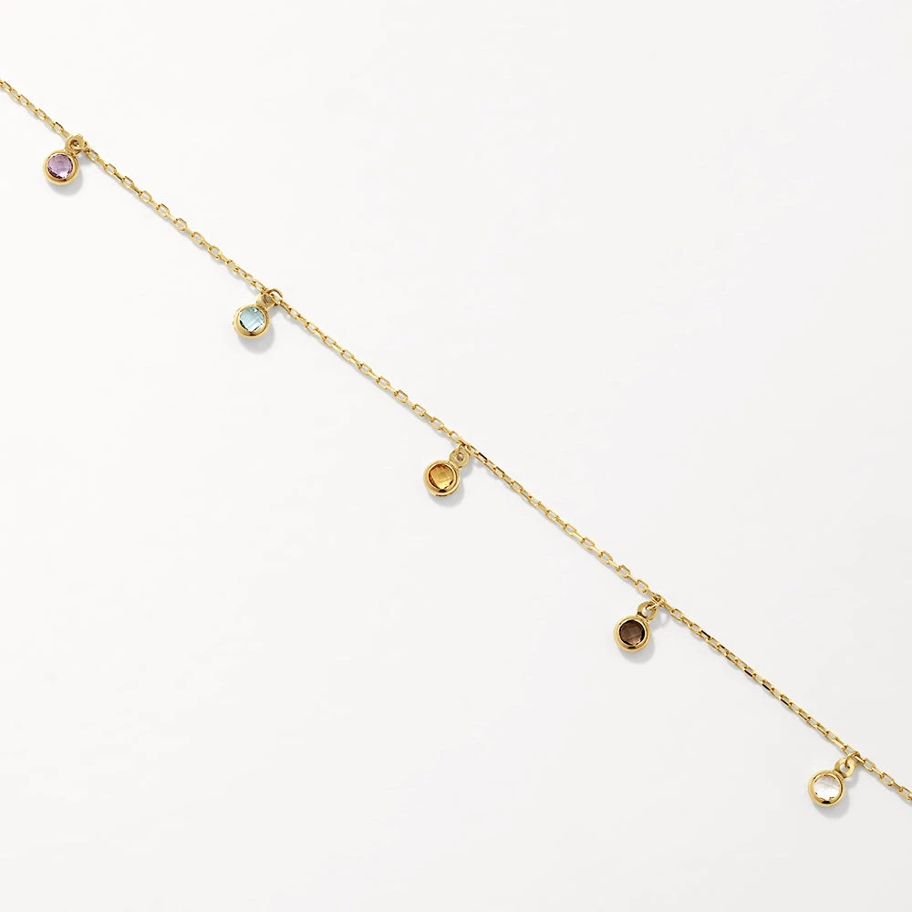A delicate droplet style, this multi-gem bracelet features a rainbow of cascading gemstones for a contemporary touch of colour. Crafted in 10k solid gold, this bracelet features a 19cm length. Sure to be your new favourite for unique, elevated design.