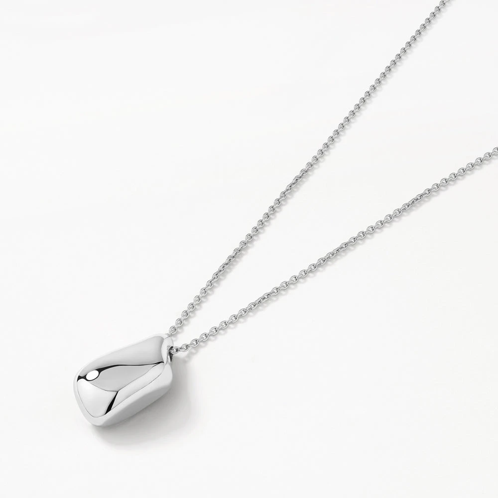 Bring a unique, artisanal edge to your look with our organic drop pendant in silver. Crafted in 925 sterling silver, this blob necklace design is minimalist yet statement – the perfect piece to wear alone for a pared-back style or to layer with your favourite silver chains.