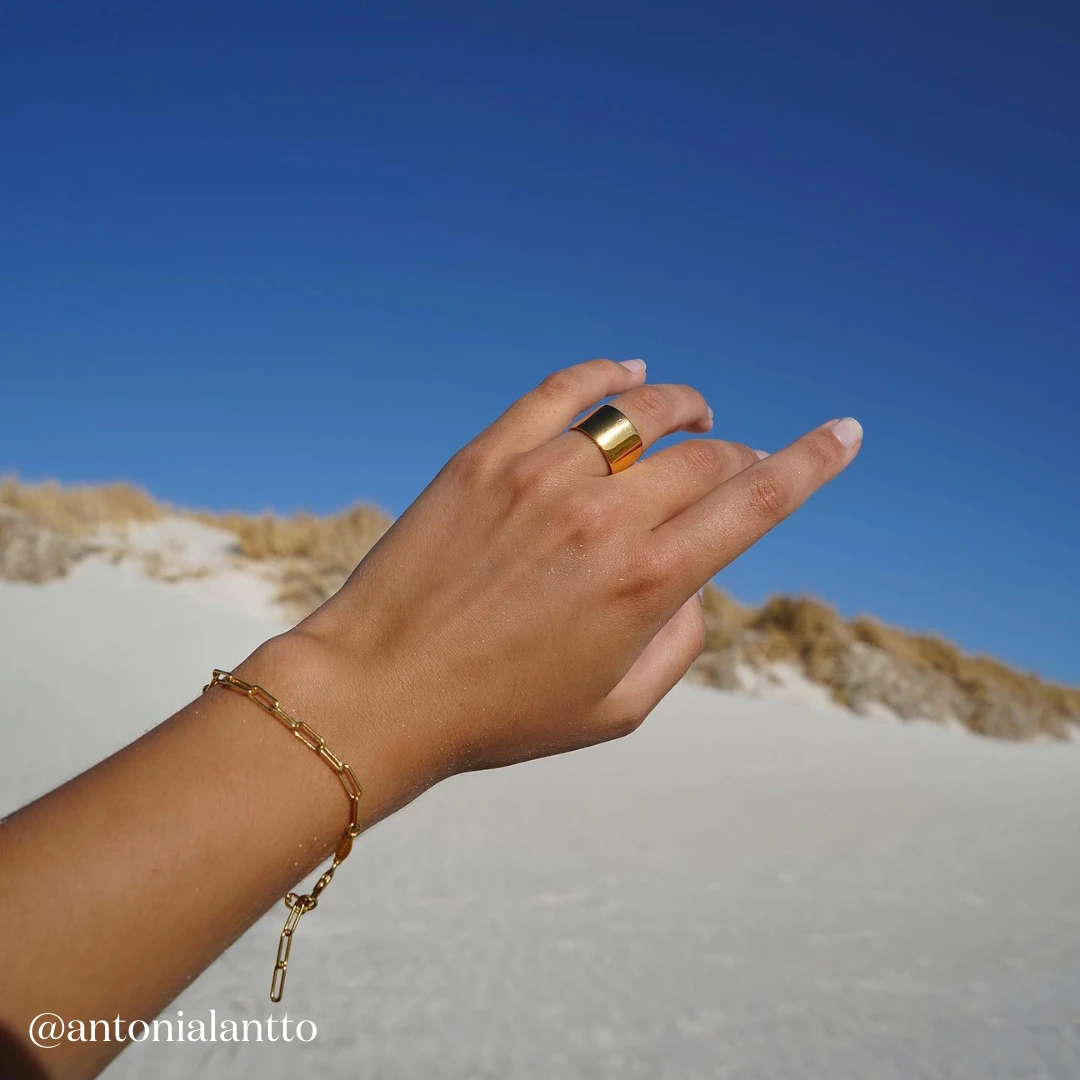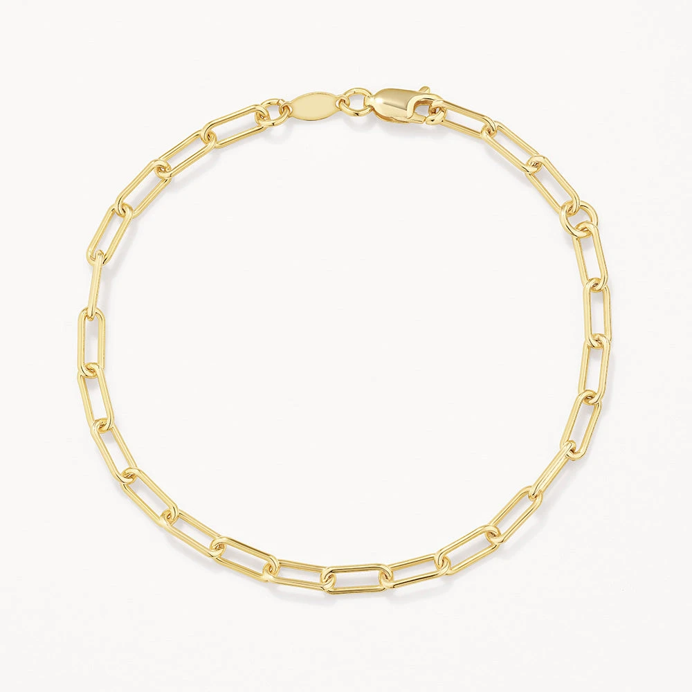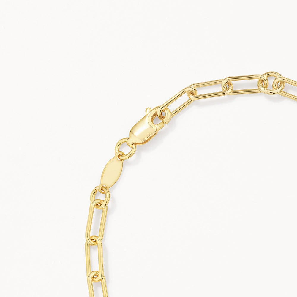 The iconic paperclip chain style, not too chunky and not too fine. Our paperclip chain bracelet in gold is a classic in the making. Crafted in 18k fine gold plating over a sterling silver core, this gold paperclip bracelet is the perfect piece to layer into your gold bracelet stack. Also available in silver.