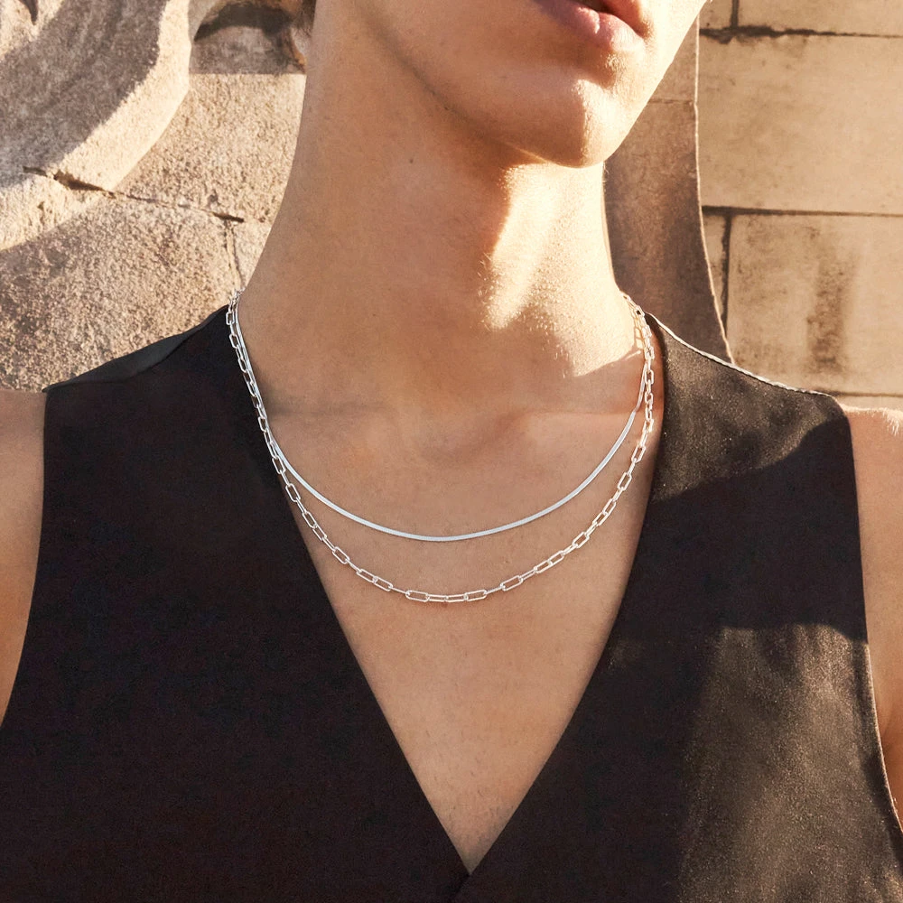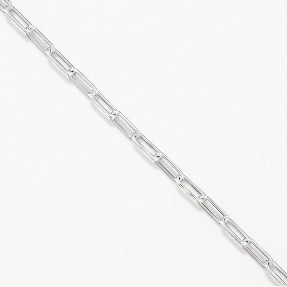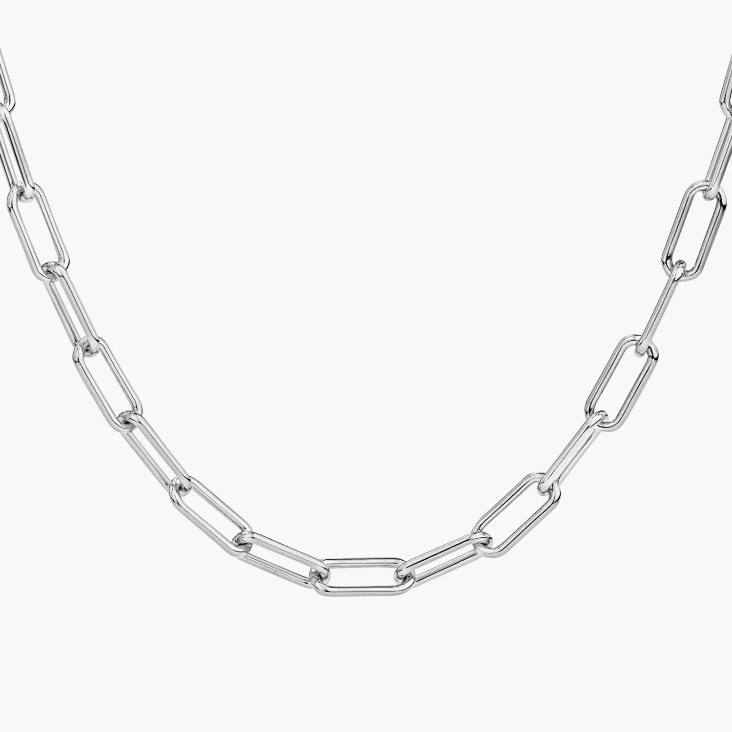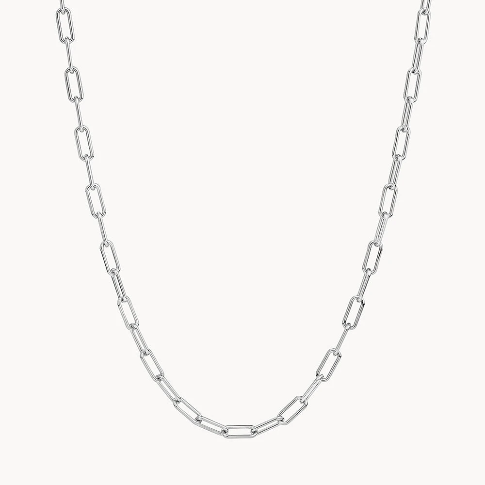 Crafted in 925 sterling silver, this silver paperclip necklace is the perfect piece to layer into your silver necklace stack. The iconic paperclip chain necklace, not too chunky and not too fine. Our paperclip chain necklace in silver is a classic in the making. Also available in gold.