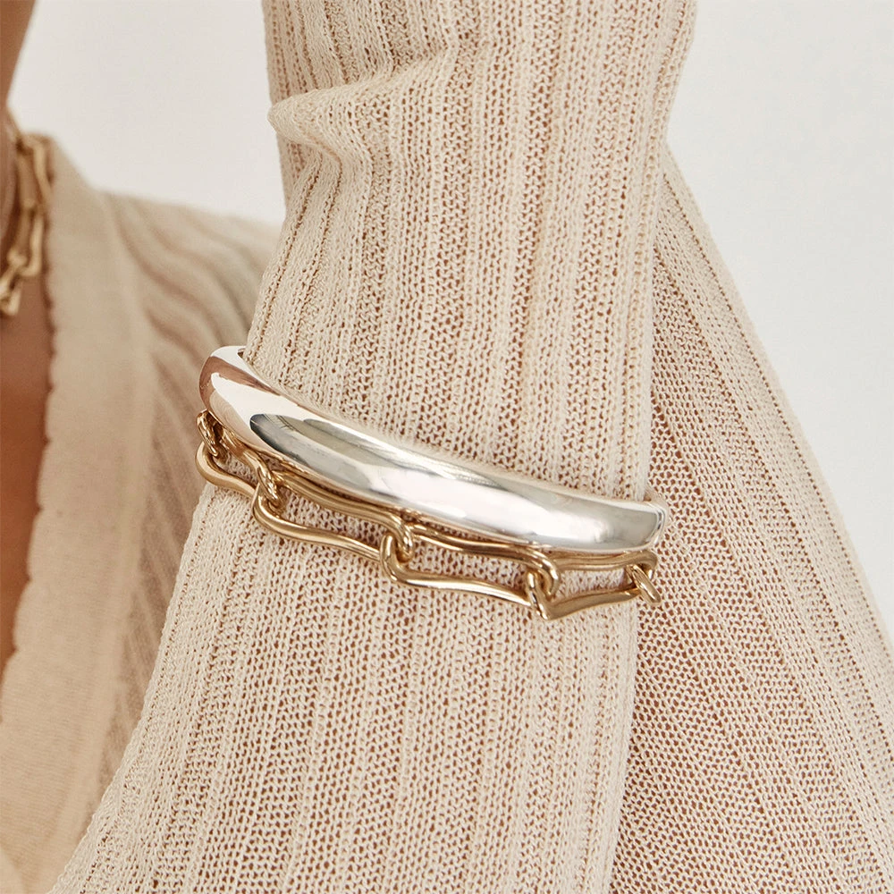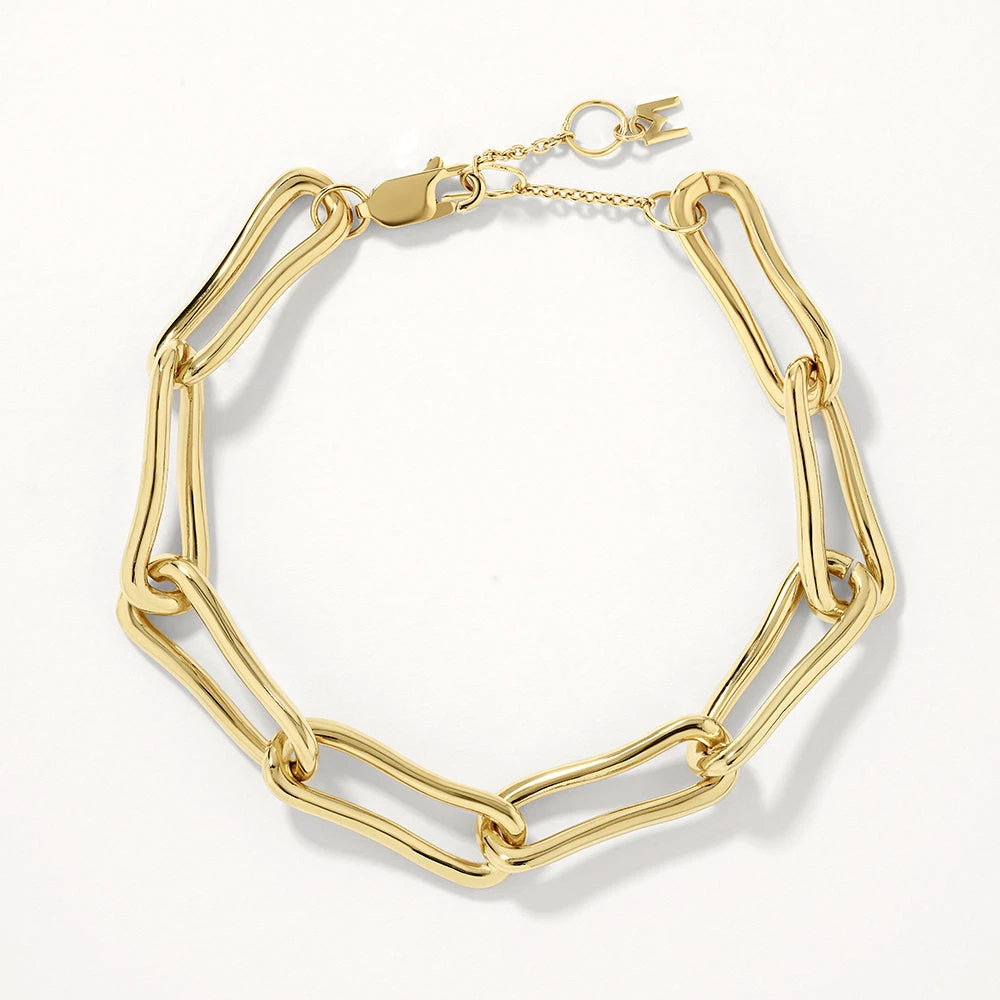 The classic paperclip chain bracelet gets a unique twist with our pinched paperclip design. This gold paperclip chain bracelet features unique waved links, for a subtly unexpected look. Crafted in 18k fine gold plating with a adjustable length from 17cm to 20 cm, pair it with every outfit to instantly elevate.