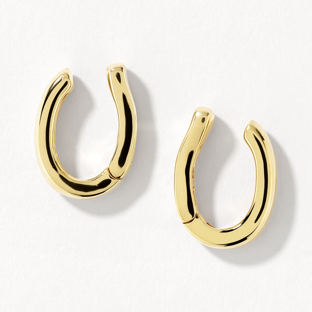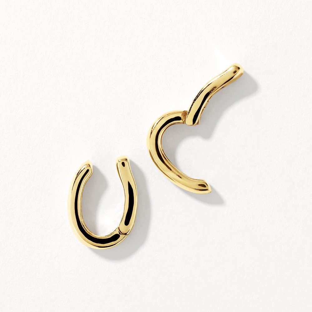 Build your ear curation stack with this modern ear cuff set. Crafted in 18k fine gold plating, this minimalist ear cuff adds an extra layer to your ear stack without the need for a piercing. Complete with a hinge for ease of wear and a snug fit.