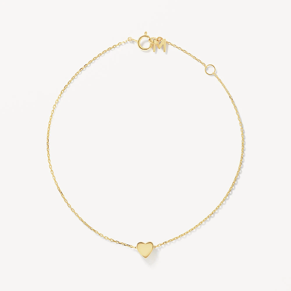 A classic bracelet with a little extra loveliness. Featuring a tiny sliding solid heart, this bracelet shines brightly alone or pairs well with additional chains and bangles. The dainty heart is set in 10k yellow gold on a fine 10k yellow gold chain. Wear one and give the other to your BFF, mum, or sister for a unique take on friendship bracelets.