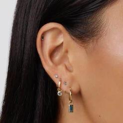 Blue Topaz Triple Marquise Helix Single Stud Earring In 10k Gold