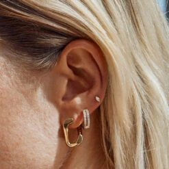 White Sapphire Triple Marquise Helix Single Stud Earring In 10k Gold