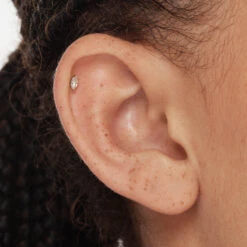 White Sapphire Marquise Helix Single Stud Earring In 10k Gold