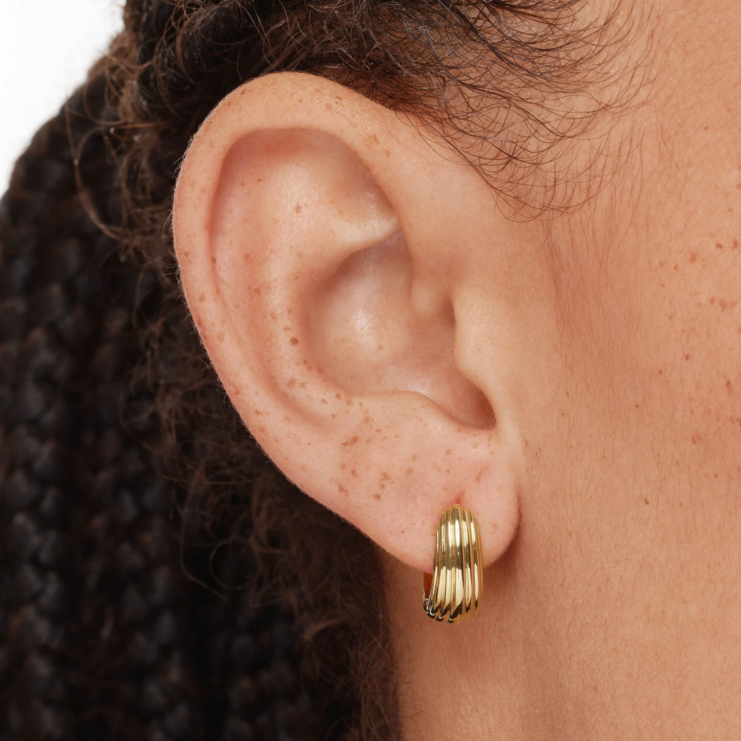 Bring a bold edge to your look with these gold statement earrings. Crafted in 18k fine gold plating with a light-catching textured finish, these ribbed earrings feature our bold dome silhouette to instantly elevate every outfit. These 80s-style chunky earrings will be your go-to all season.