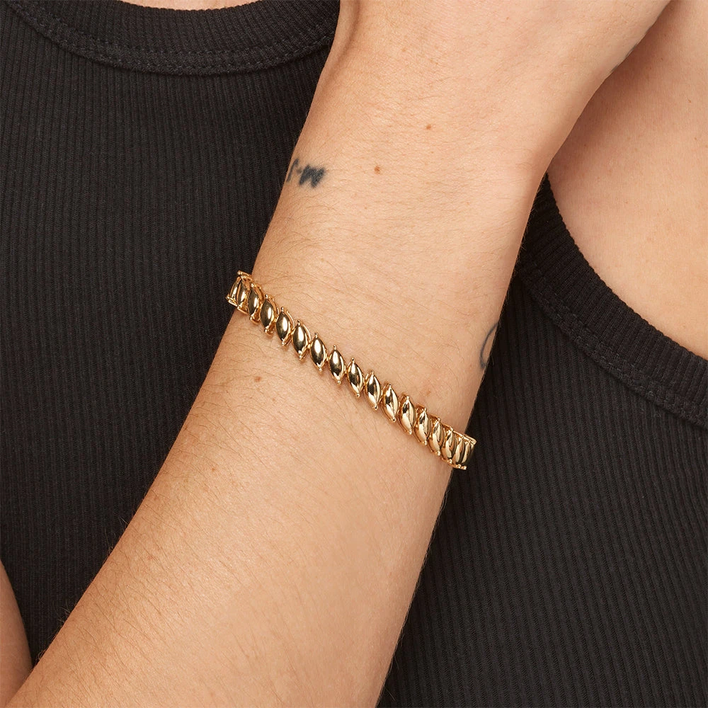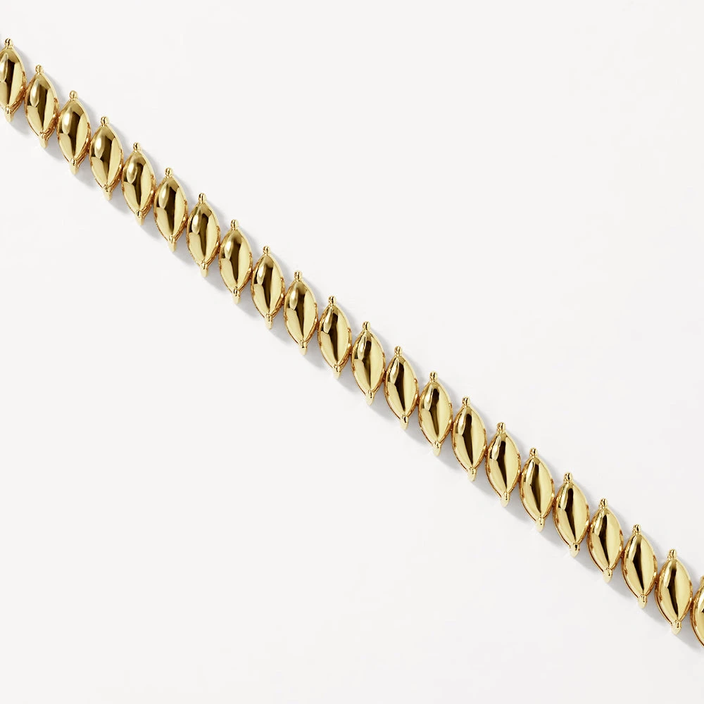 The boldest of chain styles and a unique addition to your collection, this San Marco bracelet brings statement shine to every look. With a tennis bracelet inspired design and kite shaped links, this 18k fine gold plated bracelet is a must-have for lovers of bold metal.