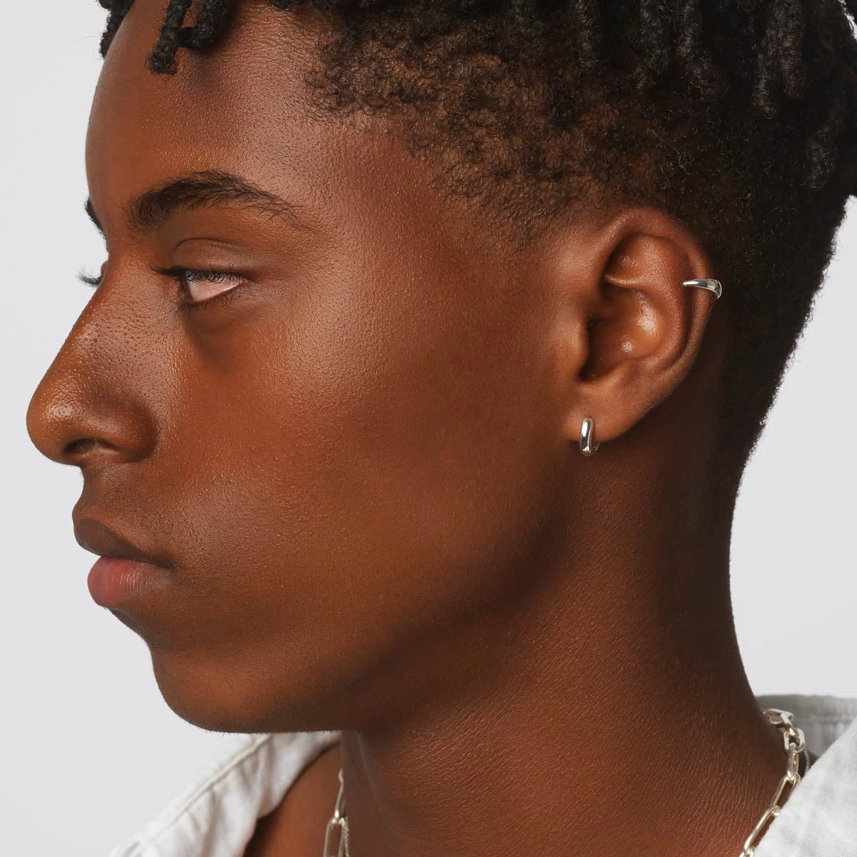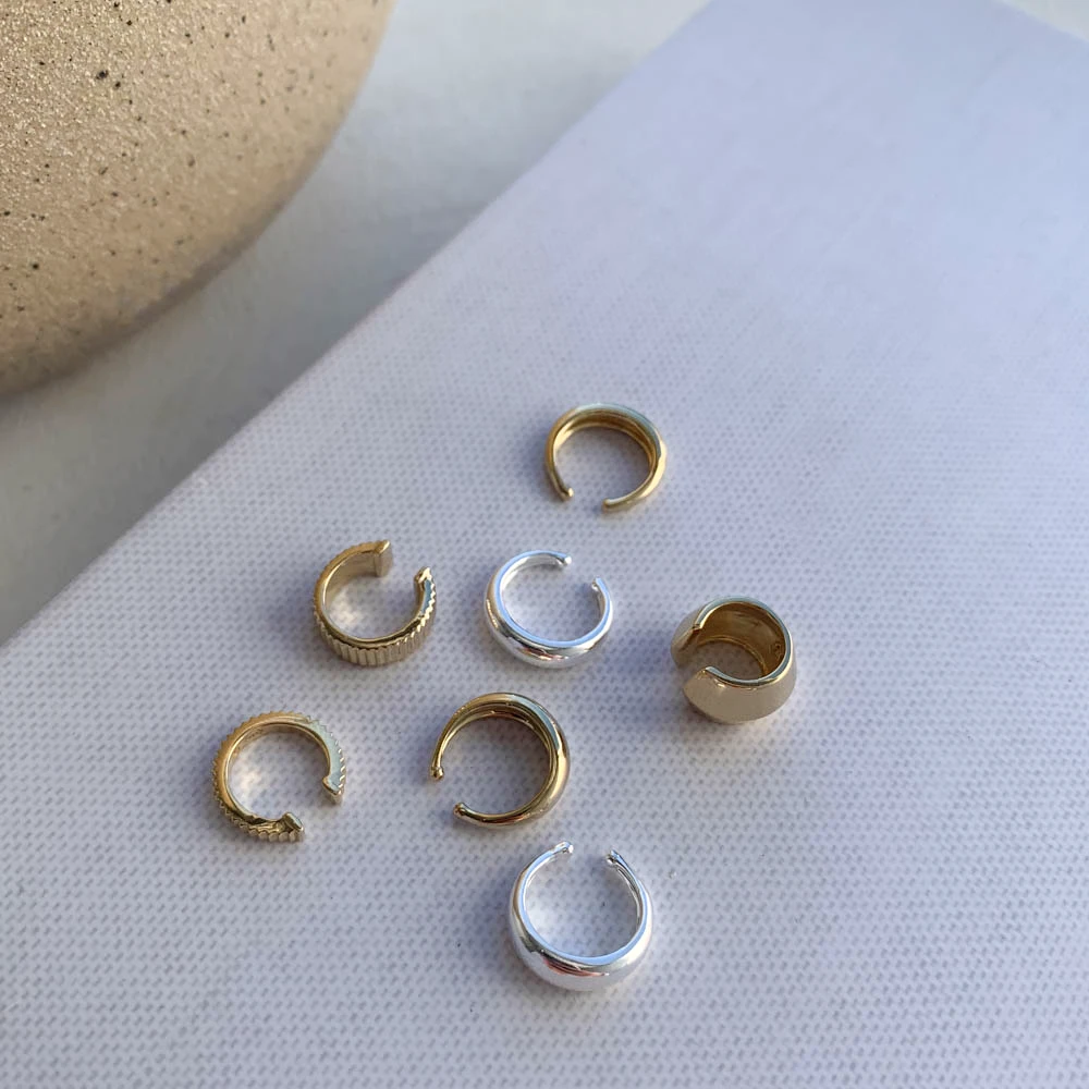 Build your ear stack with no extra piercing required. This single, open ear cuff hugs your ear cartilage, letting you instantly add an extra layer to your stack. Crafted in 925 sterling silver, with a slim 2mm thickness, it’s the perfect piece to add on when you want a little something extra. Wear this single cuff for a modern asymmetric look, or check out our curve ear cuff set in silver. Also available in gold.