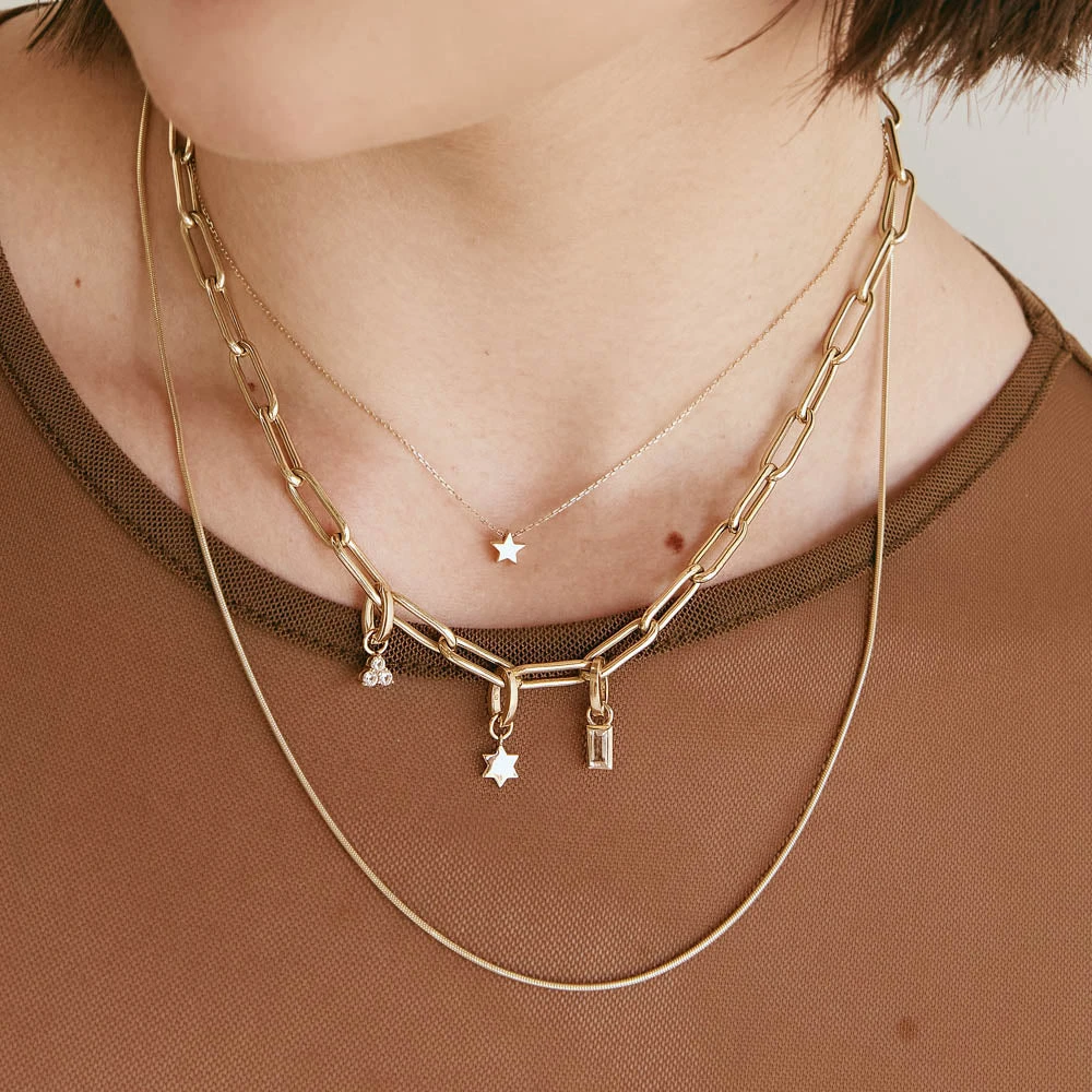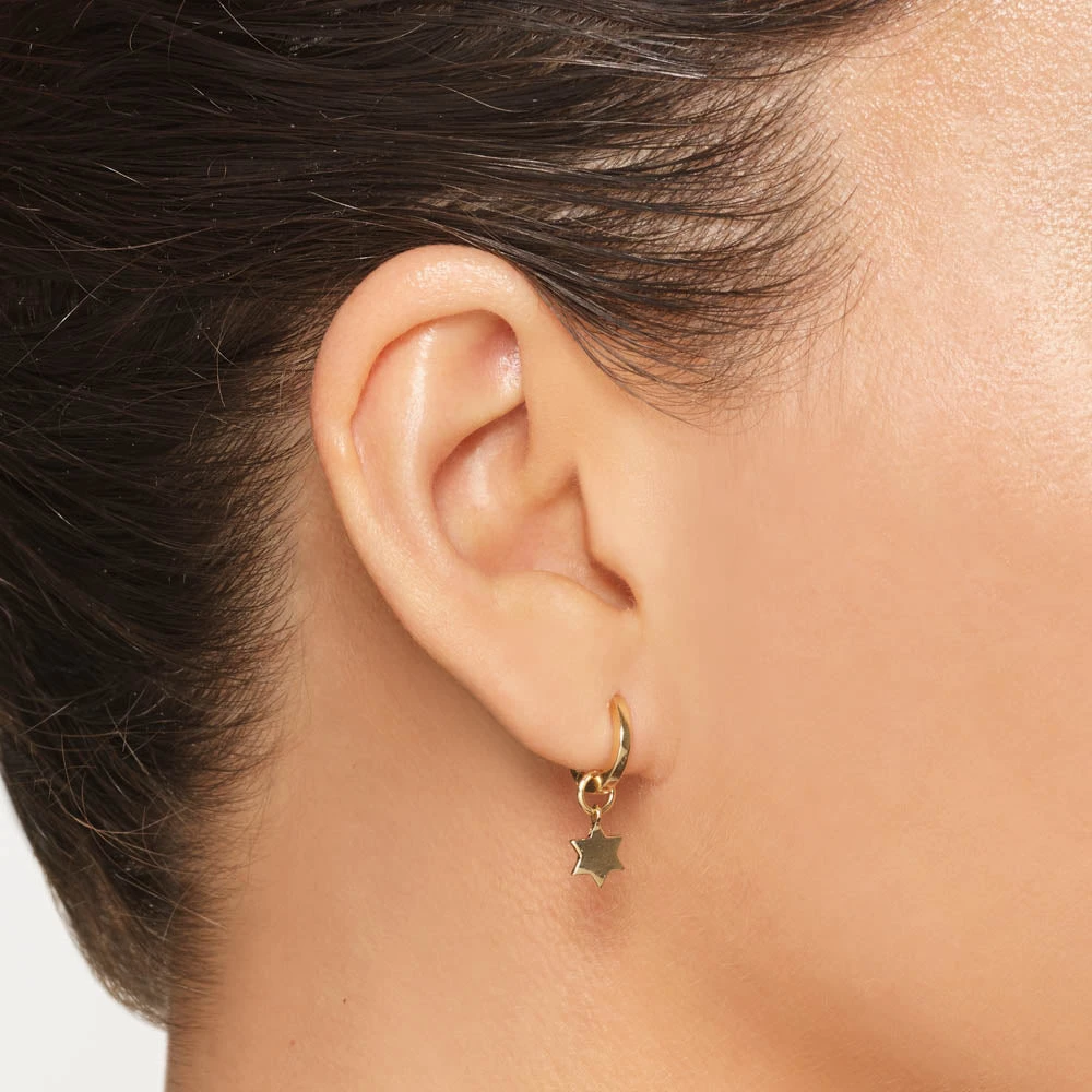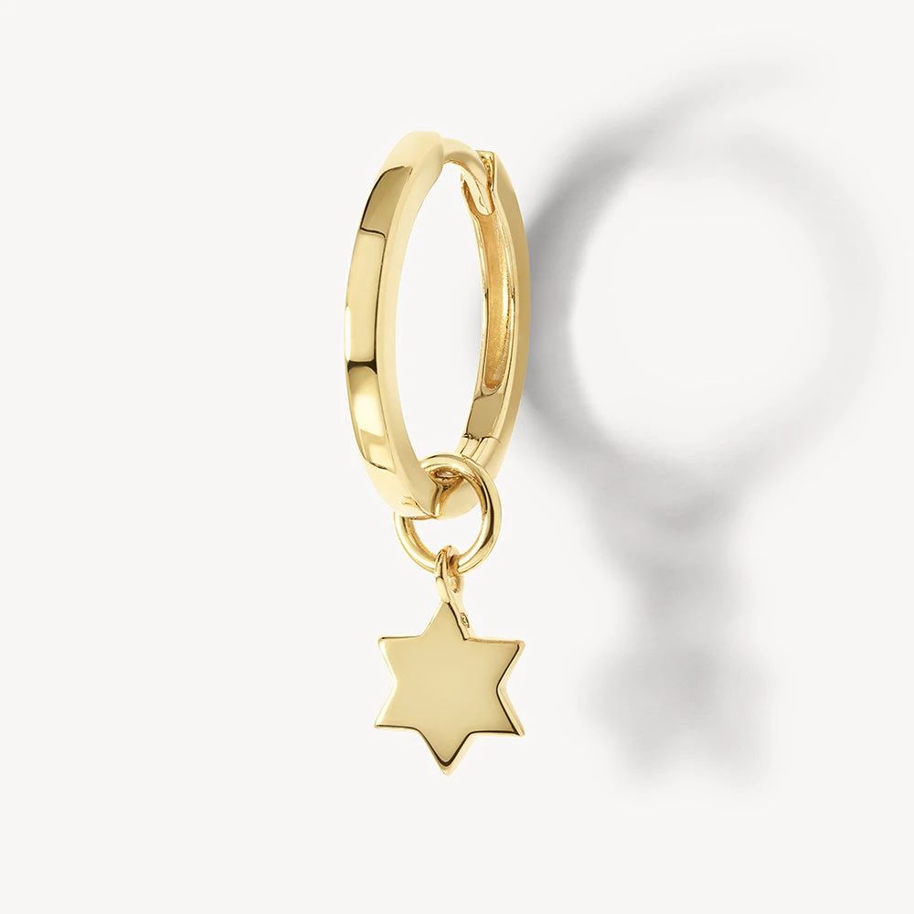 A symbolic piece that’s designed for modern everyday style, add this six point star earring charm to your collection. Whether worn to channel celestial energy or for deeper, personal meaning as a Star of David charm, this hoop charm in 10k gold is the perfect piece to wear close every day. Add it to your favourite gold hoops or huggie earrings.