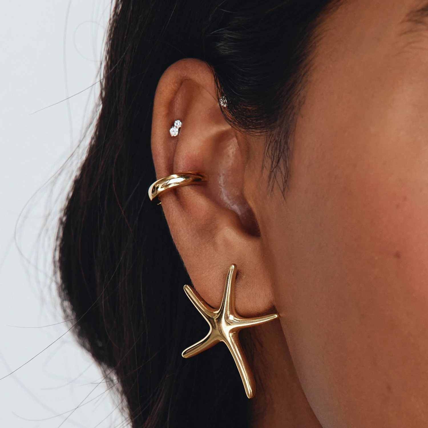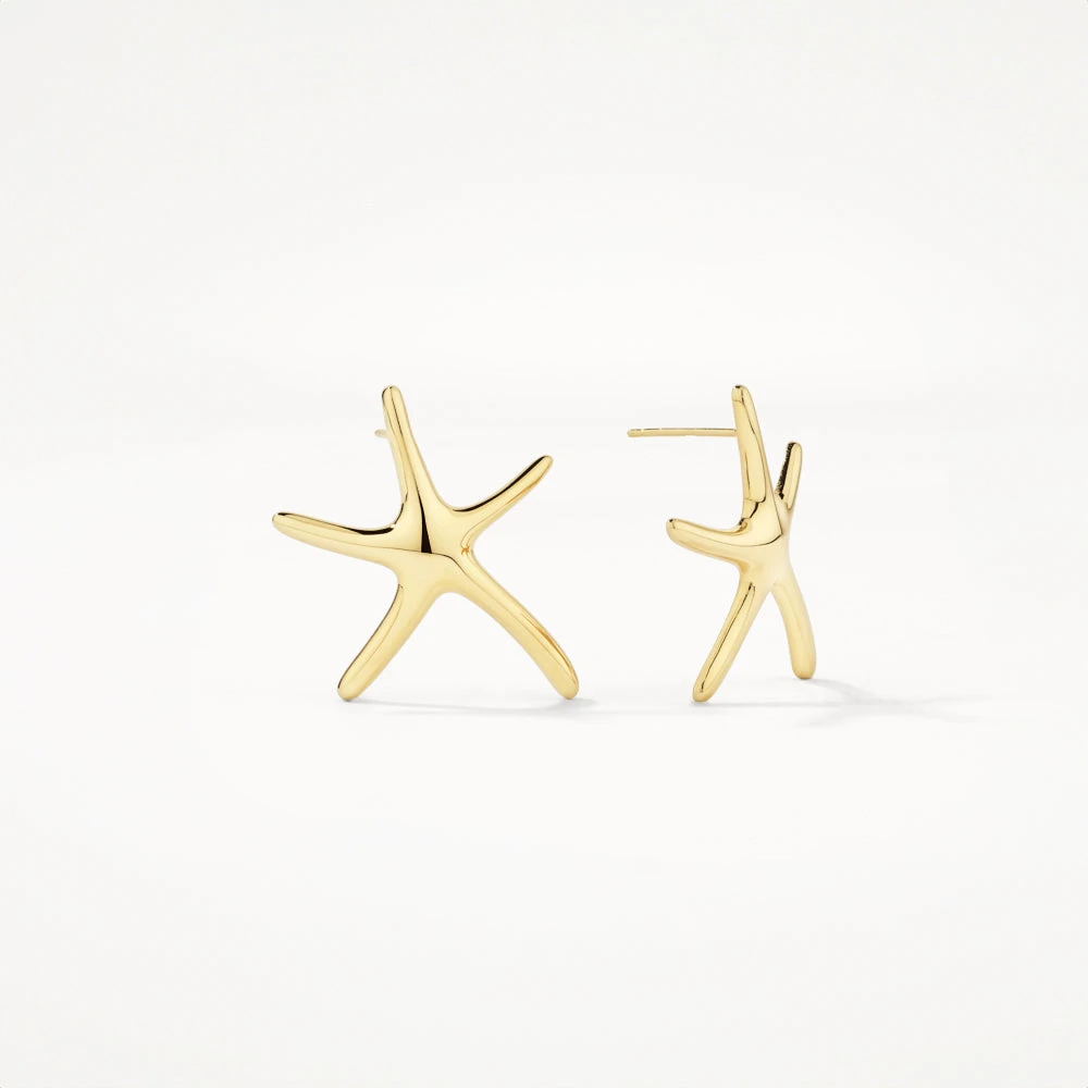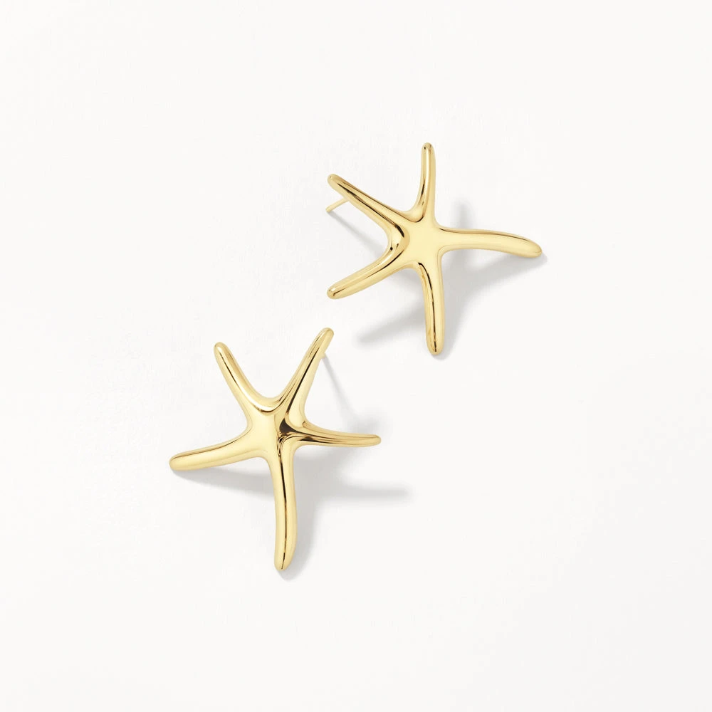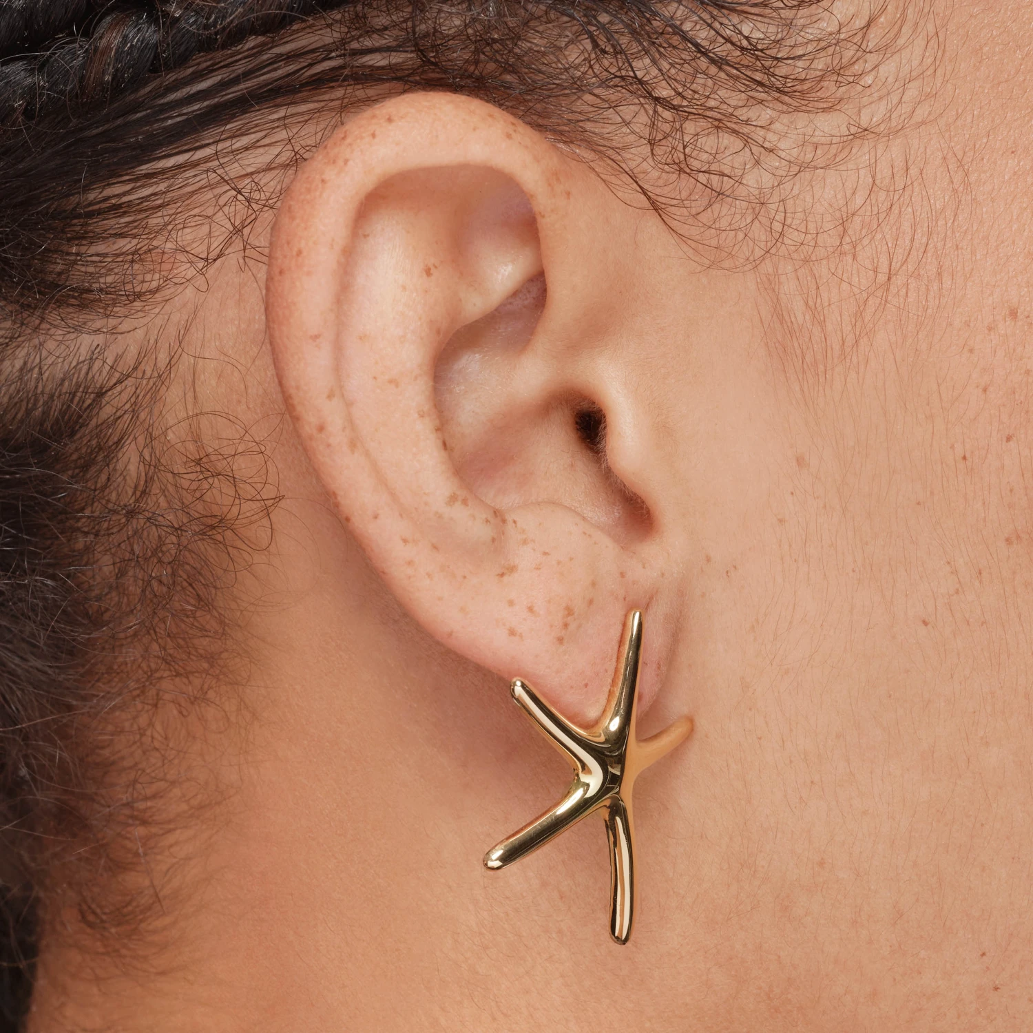 Summer-perfect statement earrings with timeless chic. These bold starfish earrings will inject a fun sense of elegance into your look, making them the perfect pair to pack for vacation or to channel summer vibes at any time. Crafted in 18k gold plating, these earrings can be worn alone or matched back with the starfish necklace.