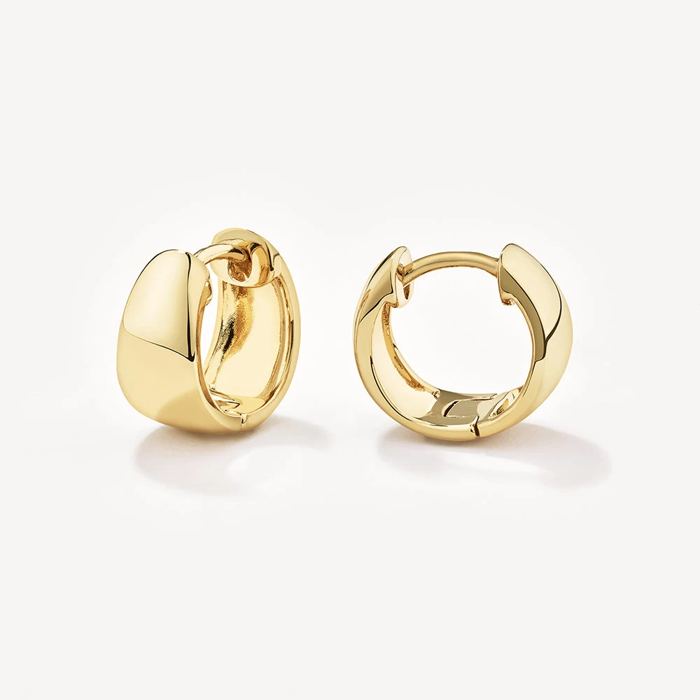 The thick dome huggie earrings in gold will take your style to the next level. Crafted in 18k fine gold plating, these statement gold huggie earrings are the perfect everyday small huggie hoop to finish your look. Pair these gold dome huggies with a pair of gold hoops.