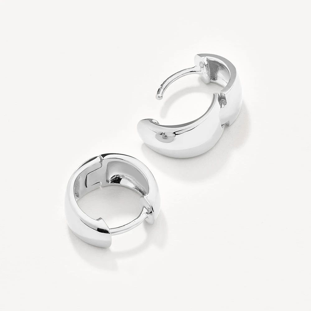 The perfect everyday small huggie hoop to finish your look, these statement silver huggie earrings are crafted in 925 sterling silver. The thick dome huggie earrings in silver will take your style to the next level. Pair these silver dome huggies with a pair of silver hoops.
