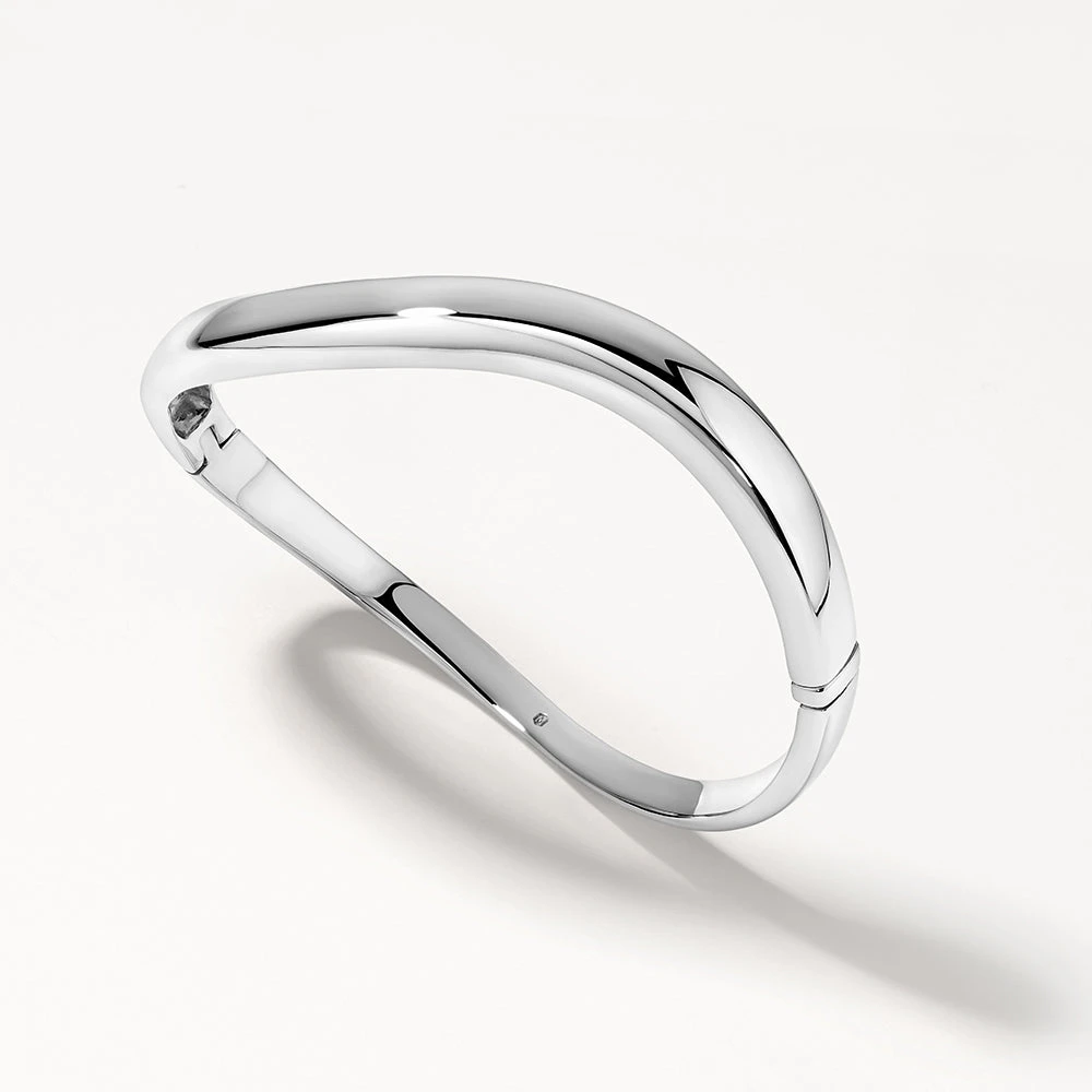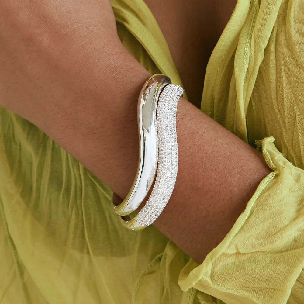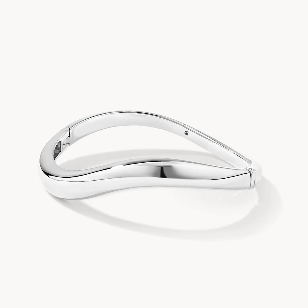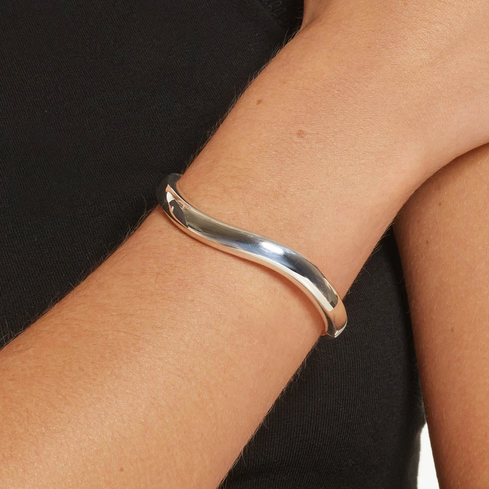 A fresh yet timeless style for summer (and every season), our wave bangle is the perfect unique piece to elevate all your looks. With a bold, fluid dome design, this statement bangle can easily be worn alone for effortless elegance, or stacked with other silver bangles and chain bracelets for a personalised look. Crafted in 925 sterling silver, pair your wave bangle back with everything from bright maxi dresses and neutral linens to denim this season. Stack it with our silver white topaz wave bangle for the full look.