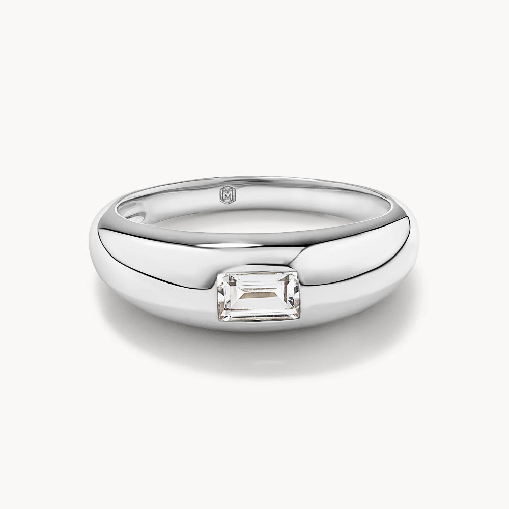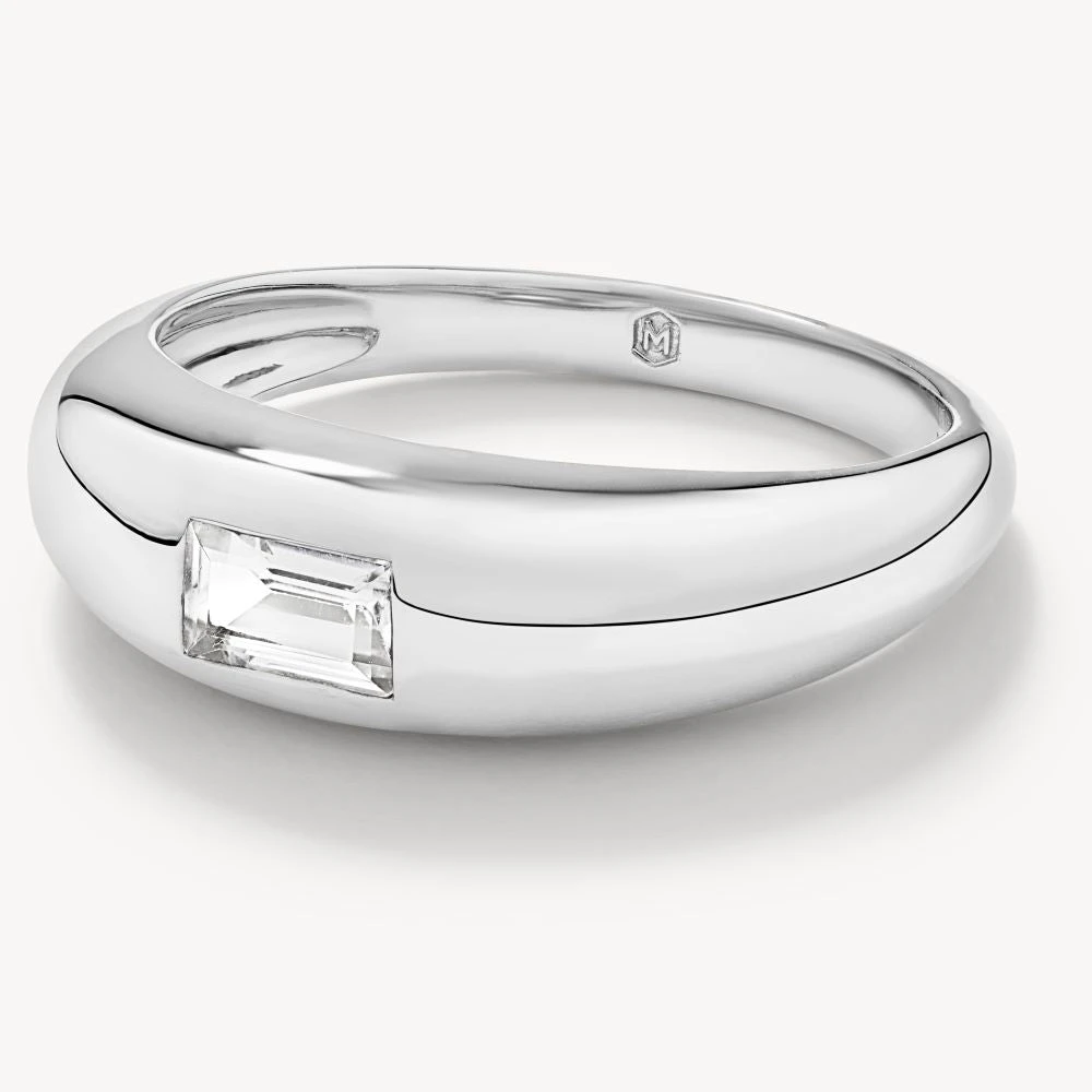 Bringing depth to your ring stack or holding its own as a statement piece, our white topaz baguette pinky ring in 925 sterling silver is a trending gypsy ring shape that will endure as one of your lived-in favourites. Its curvy design is versatile enough to wear with any look, while adding a little more interest. Available in 5 sizes, you can style it on your pinky or whichever digit you prefer.