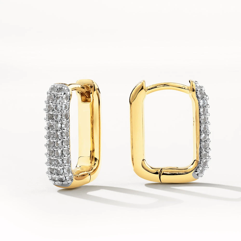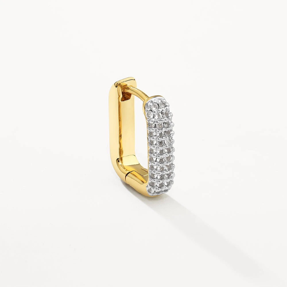 Bring a fresh angle to your earring stack with our paperclip pave earrings, crafted in 18k fine yellow gold plating and adorned with natural white topaz. In a cute, everyday mini hoop size, they’re the ultimate addition to your paperclip jewellery collection. Style them with our white topaz midi pave paperclip earrings in gold for more of a statement look.