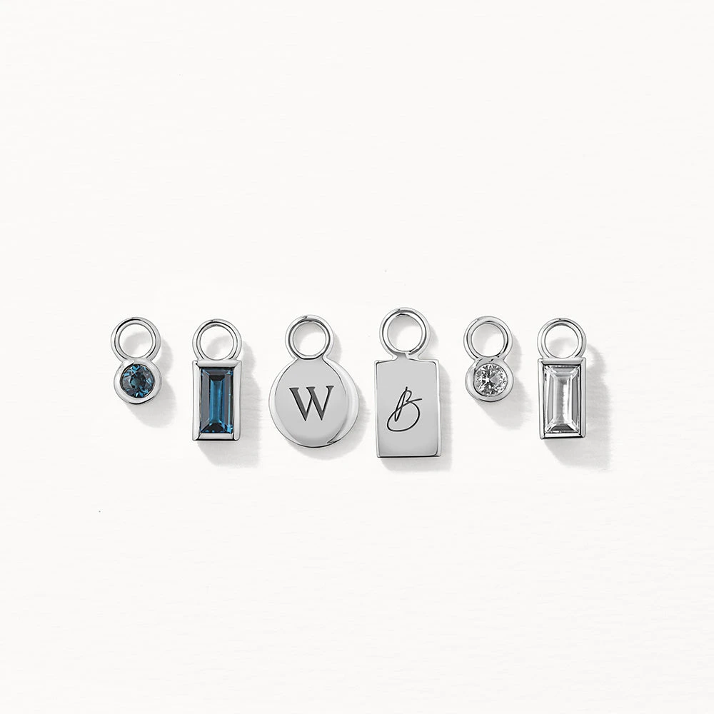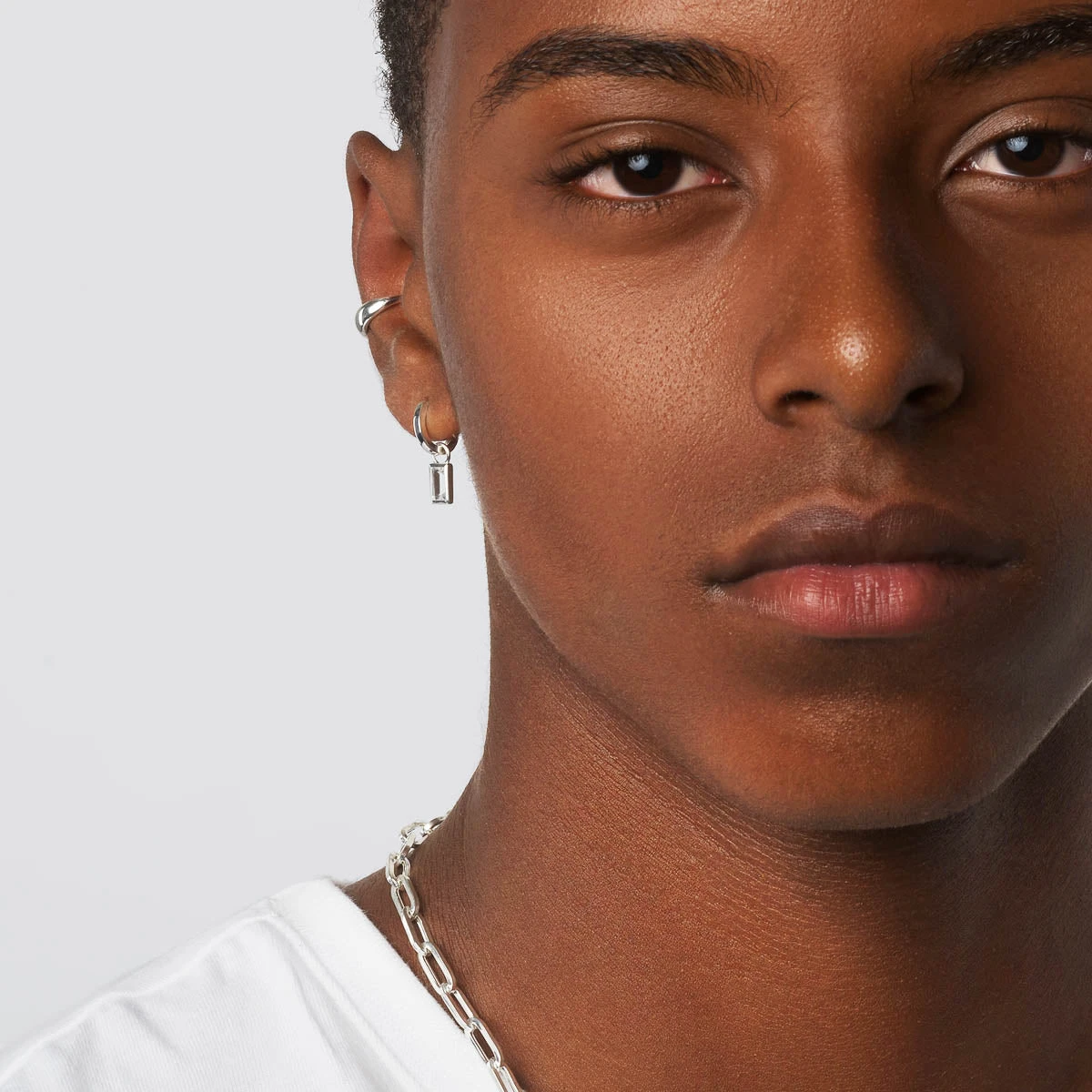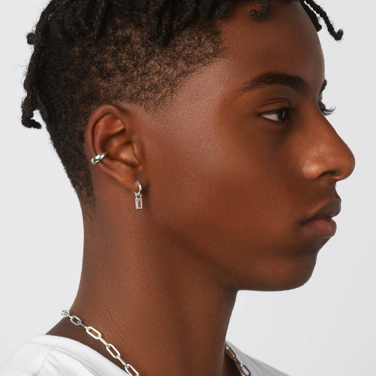 Elevate and personalise your curated ear look with our range of must-have earring charms. This dainty rectangular charm features a natural white topaz gem set in 925 sterling silver. Designed to wear on a huggie or sleeper earring, it drops to add movement to your look and catch the light. Wear one at a time, or mix and match a stack of hoop earrings and charms for your bespoke look.